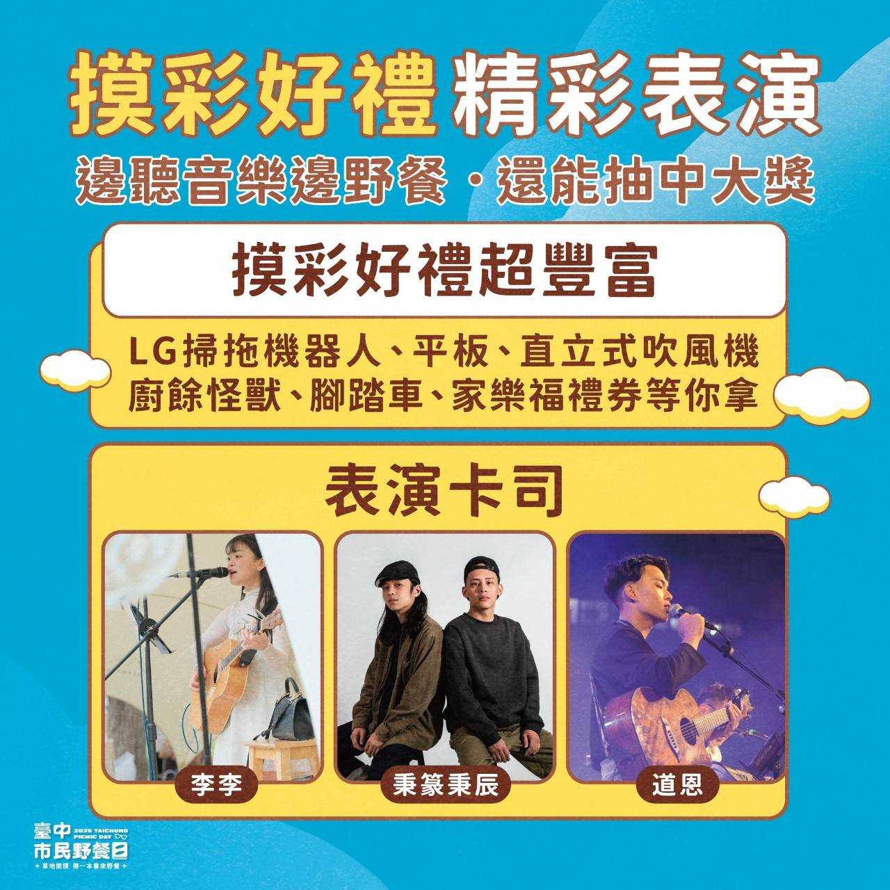 教育局長蔣偉民表示,台中市民野餐日活動鼓勵市民走出戶外,感受在草地野餐的休閒時光,同時親近公園綠地、促進人與人之間的情感交流。今年活動主軸結合閱讀推廣與家庭情感經營,將現場規劃為舞台區、野餐區、舒活市集區、閱讀主題區與特色打卡亮點等空間,營造一場如同翻開「生活的書」般的沉浸式幸福體驗,鼓勵夫妻、伴侶、家庭成員放慢步調,感受生活的溫度與美好。