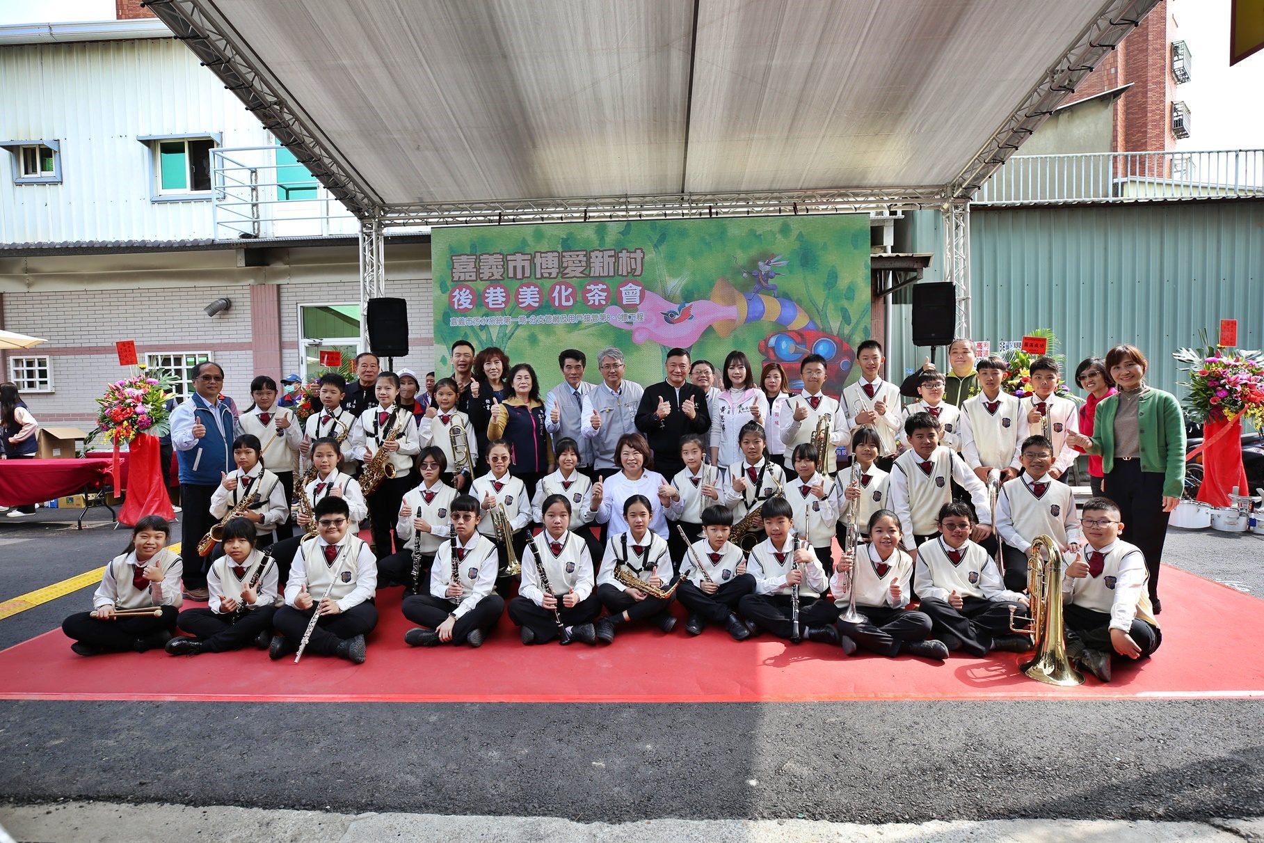 嘉義市府團隊近年來積極推動污水下水道建設,已於113年底完成第一期計畫目標用戶接管15,000戶,第一期計畫總經費約43.69億元,其中污水8、9標工程經費約6.25億元,目前進度達83.95%,是污水一期建設計畫裡涵蓋範圍最廣及最後完成的標案,今(19)日在博愛新村裡的小巷弄內舉行污水系統第一期分支管網及用戶接管第8、9標工程後巷美化茶會,由嘉義市長黃敏惠帶領市民朋友見證博愛新村巷弄在污水工程完成美化後的蛻變,牆面彩繪特別融入阿里山林業小火車的鮮明色彩,應用於機器人木材運輸機,並以樂器樣式的煙囪象徵蒸氣運行,與嘉義市管樂文化相結合,另外地磚舖設以「木」字型式排列,連結成神木的意象,透過鋪設平整的地面、改善排水環境,結合牆面彩繪,讓後巷轉變為「社區亮點」。期待市民朋友一同了解後巷美化的益處,一同攜手打造永續文明城市,翻轉城市風貌。