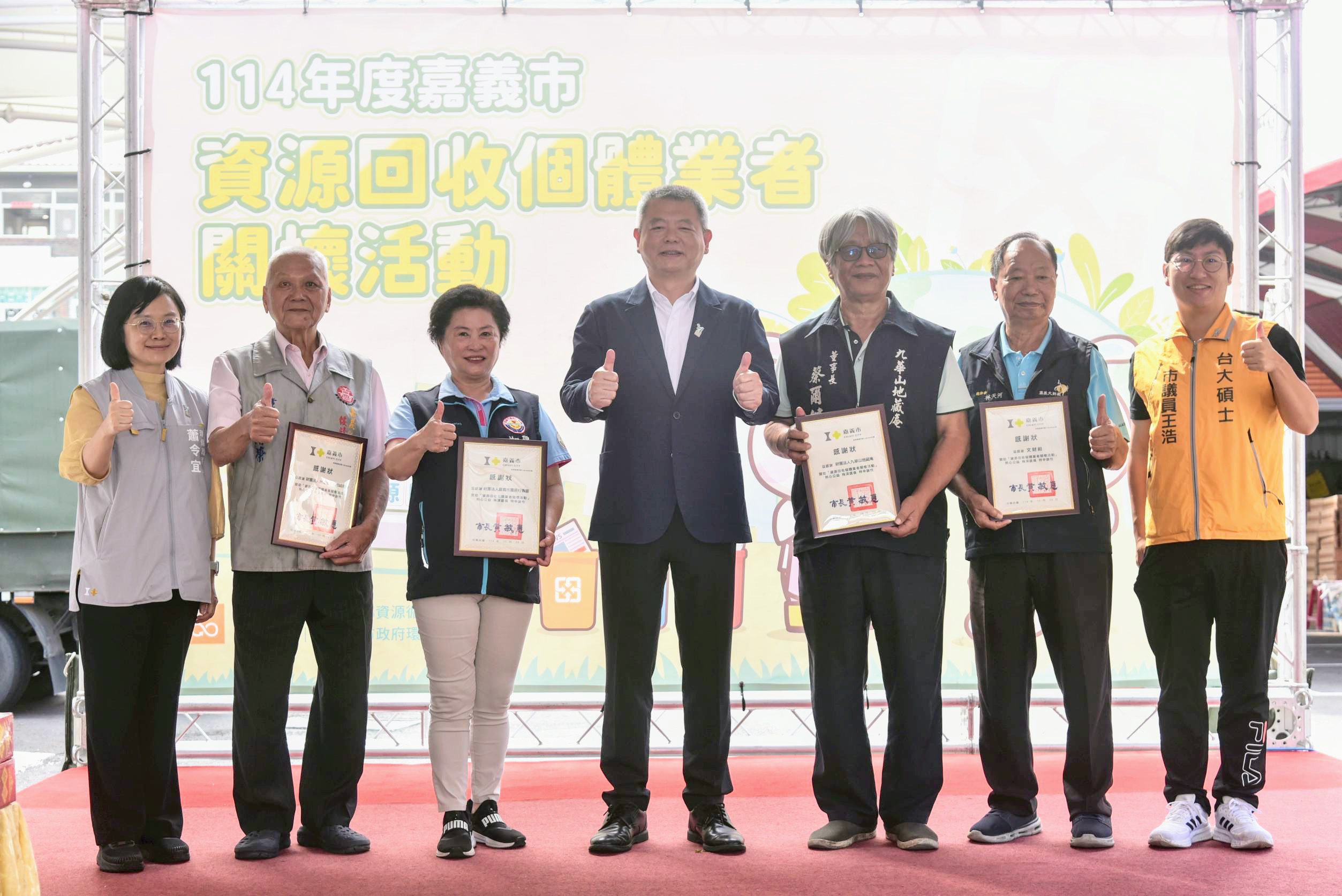 林瑞彥表示,資源回收個體業者是環境守護的重要力量,嘉義市列管的個體業者中,超過60歲的資源回收個體業者有196位,佔比超過七成五,無論風雨或烈日當頭,每日勤奮地投入資源回收工作,正是因為他們穿梭於街頭巷尾,細心地收集和分類回收物,成就了亮眼的資源回收成果,同時也感謝宗教團體及社會善心單位的慷慨支持,讓溫情持續在嘉義傳遞。市府團隊也定期訪視個體業者的工作與居住環境,並持續提供行政資源與生活照顧,確保他們在安全、安心的狀態下投入回收工作。