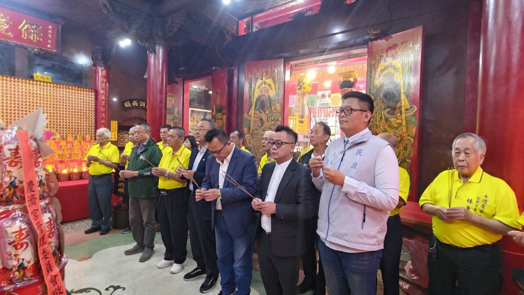 前內政部部長余政憲今(29)日下午2時代表總統賴清德前來七堵慶濟宮致贈墨寶,民政處處長呂謦煒親自陪同,除了與在場的慶濟宮主委柯金標、廟方委員及信眾問候寒喧外,呂謦煒也讚揚慶濟宮平日濟助弱勢及發揚宗教文化不遺餘力,現場氣氛莊嚴而隆重。
