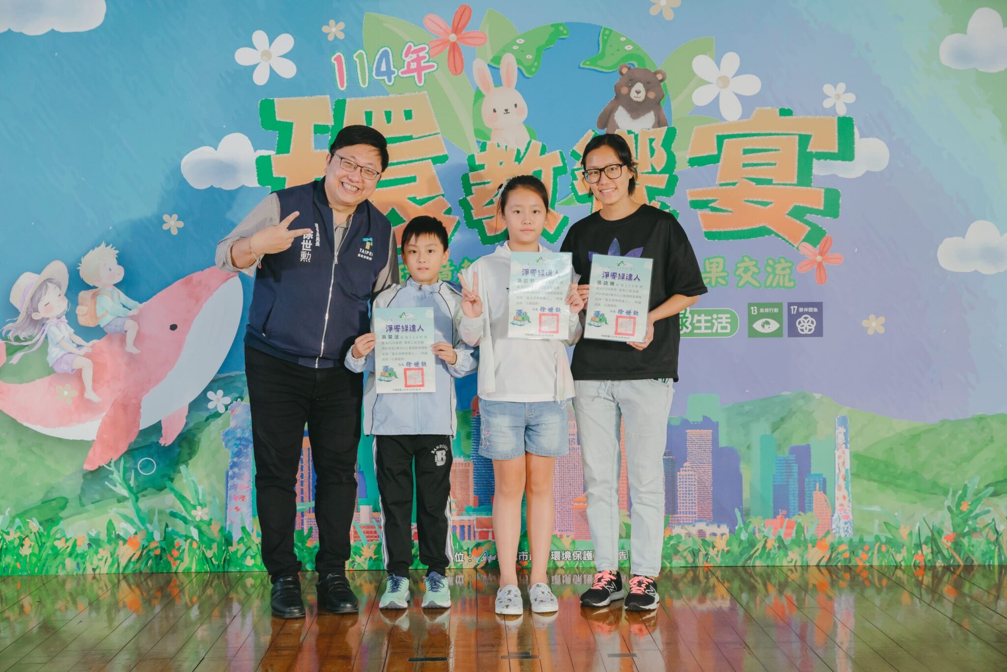 臺北市環保局今(30)日於郵政博物館舉辦2025「環教饗宴活動」,頒獎表揚「臺北市環境教育獎」得獎者,以及「臺北FUN暑假 環教之旅」的「淨零綠達人」。現場並結合獲環境教育基金補助的民間團體成果展示,以及第九屆國家環境教育獎優等單位──國立臺灣博物館的經驗分享,期盼透過各項環境教育成果的交流與學習,凝聚全民力量,攜手邁向淨零新生活。