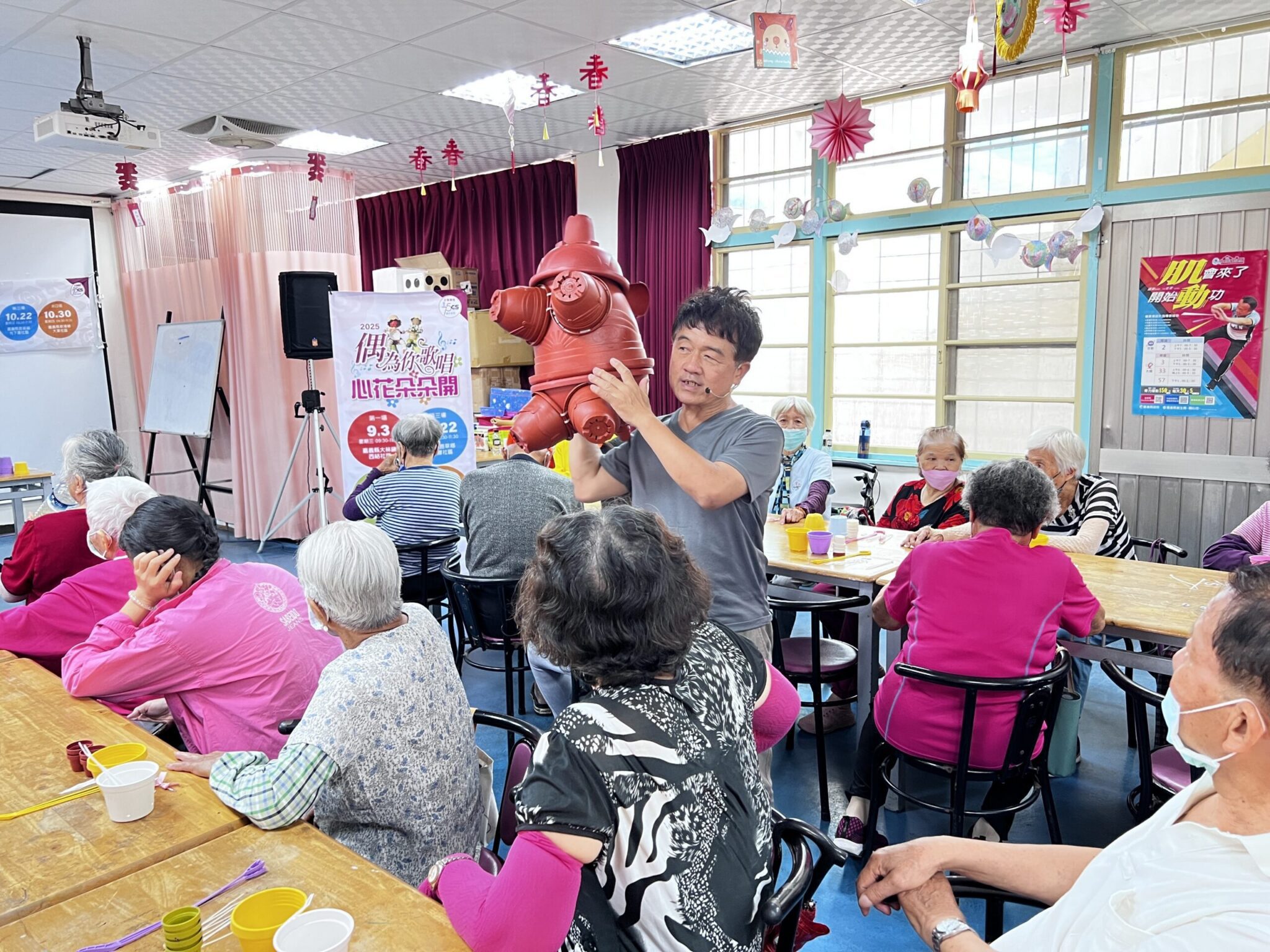 本次活動由帶偶回家工作室負責人陳威光帶領長輩發揮創意,自由搭配花盆組件,設計出獨一無二的「花盆人偶」作品;同時邀請台南木吉他彈唱情歌王子蔡政翰,帶來多首經典曲目,現場充滿笑聲、歌聲與掌聲。手作與音樂的雙重體驗,不僅提升長輩的手眼協調與專注力,也促進人際交流與社區凝聚力。