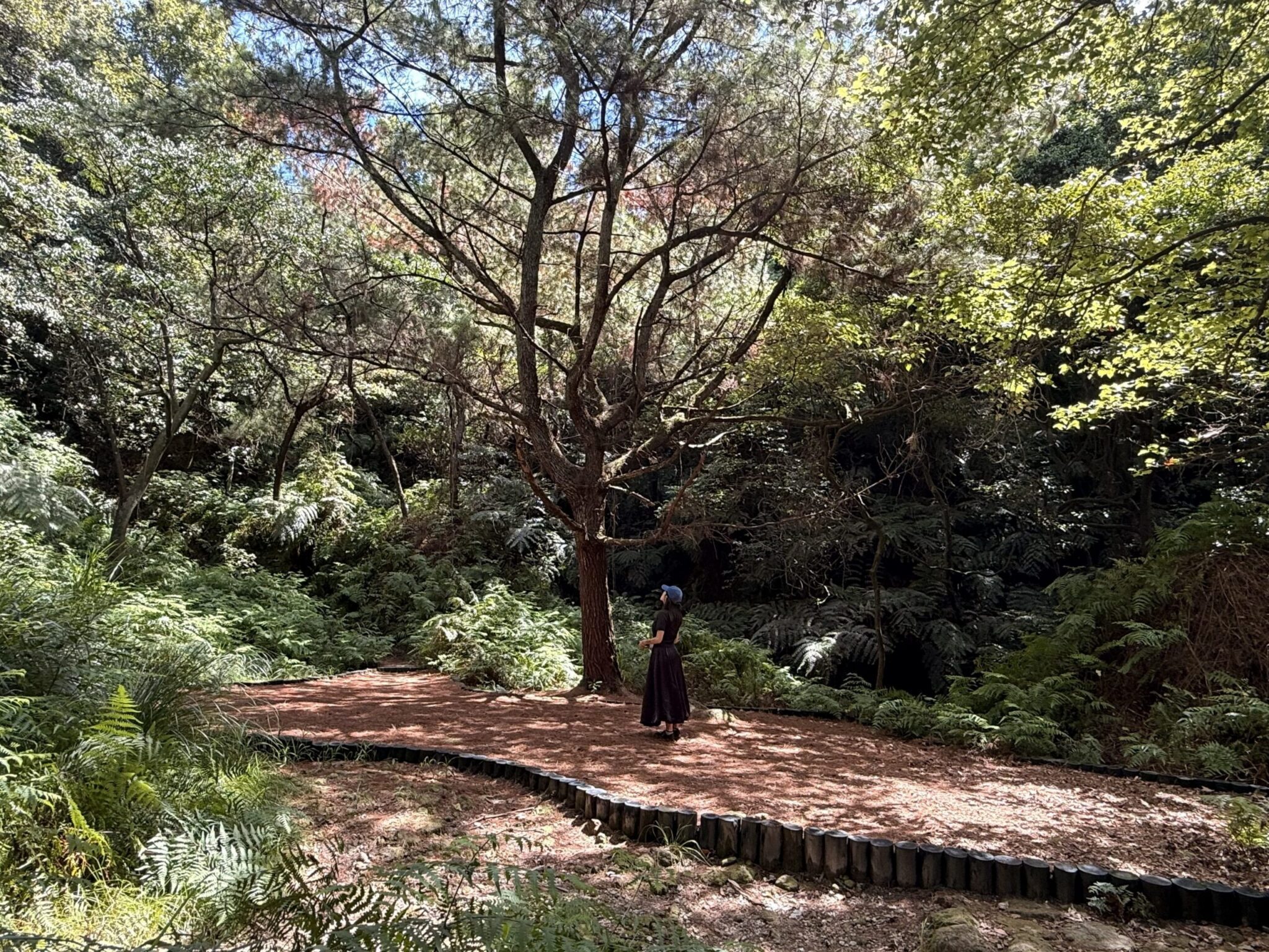 大地處表示,紫明溪全程路線平緩,如果只環形走一圈僅需半小時,綠蔭下陽光被層層枝葉濾去,只留下閃爍的光影與舒適涼爽,各年齡層都能享受輕鬆宜人的健行體驗,到了深秋時節還能看到層層楓紅,非常美麗。