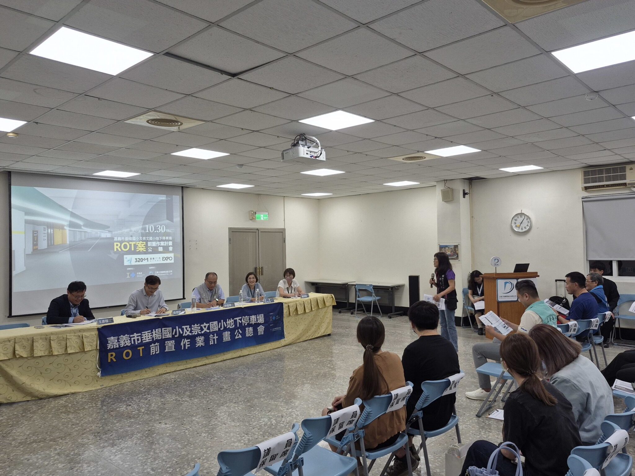 在公聽會中, 嘉義市政府團隊簡報內容包含基地現況、整體規劃 目標、課題與對策、預計修繕項目及民間參與方式,並針對居 民關切的施工安全、校園影響、規劃方案與修繕項目進行回 應。參與來賓也提出建議,包括停車合理費率、智慧化服務、 設施維護、停車場安全、里民優惠等面向, 嘉義市政府均納入後續規 劃評估。