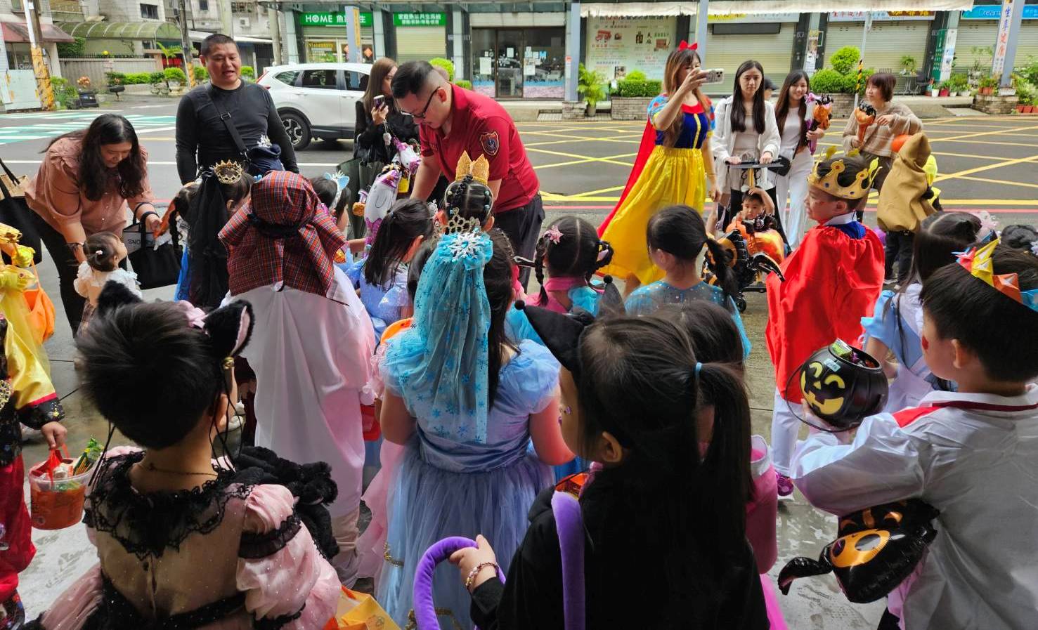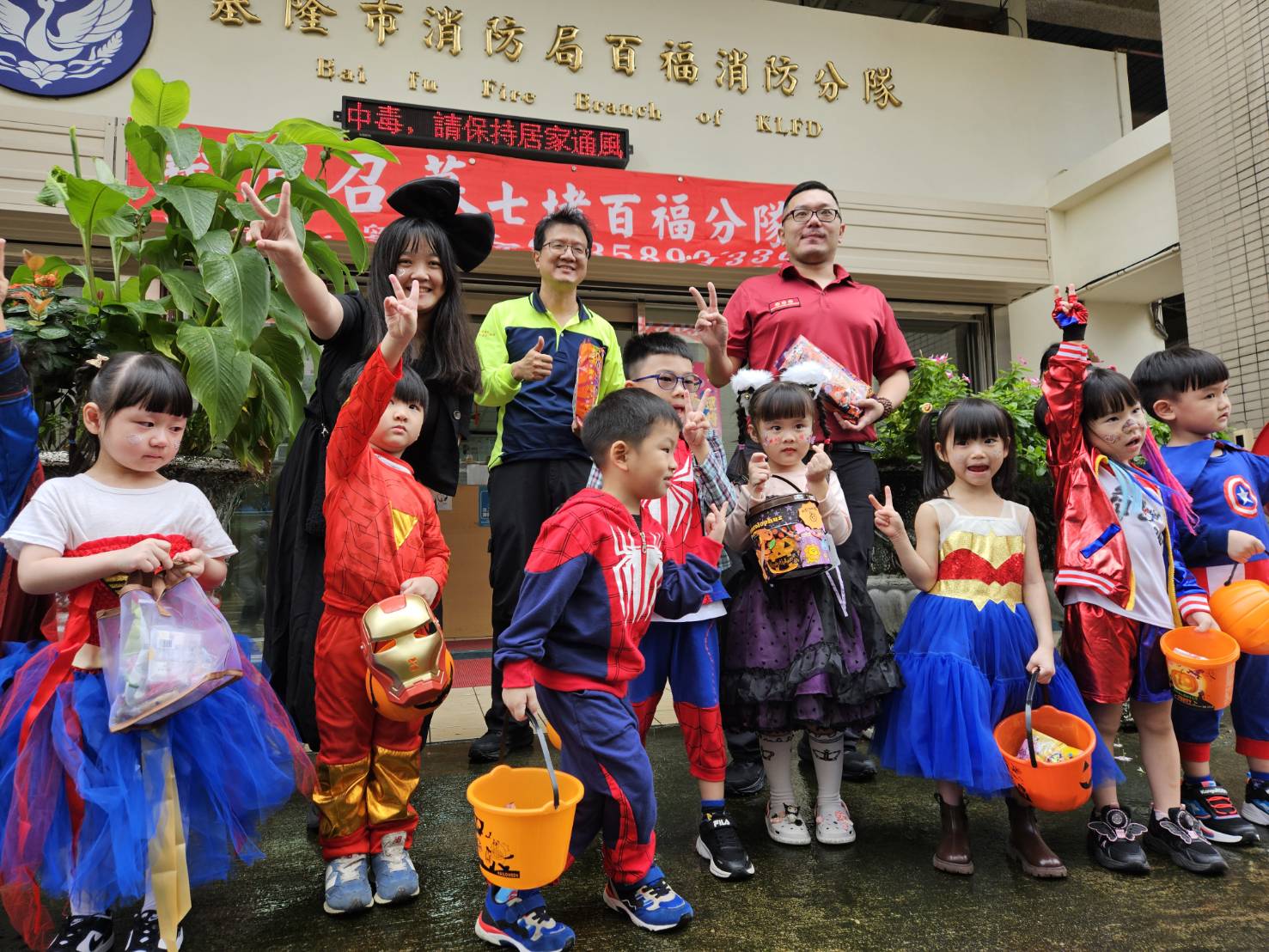 隨著萬聖節到來,10月29日百福消防分隊迎來一群特別的小客人!來自七堵區小象幼兒園的三十多位小朋友,穿著各式可愛的角色服裝,興高采烈地前來消防隊「要糖果」。現場氣氛熱鬧歡騰,笑聲不斷。