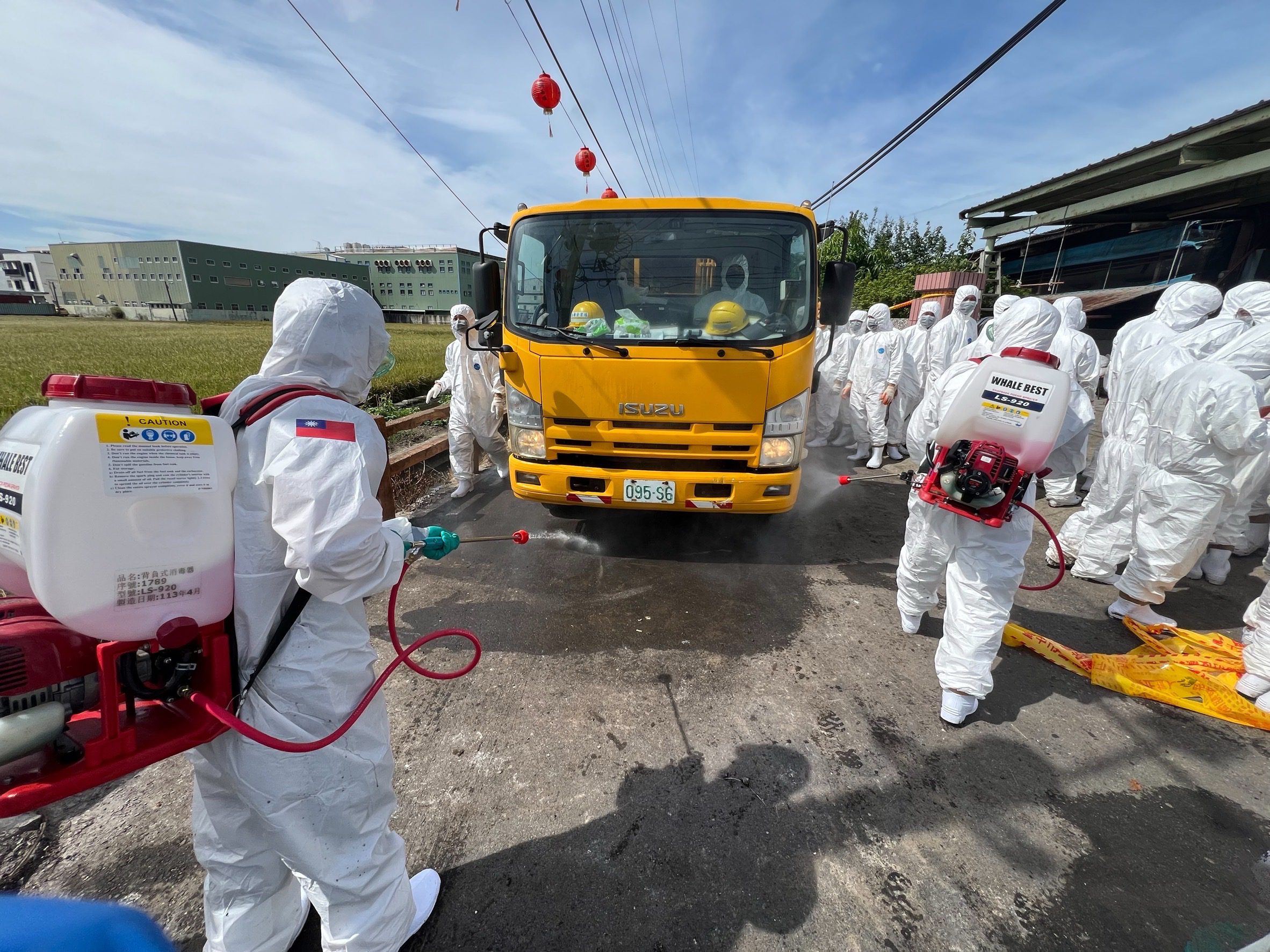 吳局長指出,市府十分重視非洲豬瘟疫情的處置作為,為加強防堵疫情蔓延,並配合中央應變中心建議,市府動保處於昨晚向國軍請求支援案場清理與消毒作業,陸軍砲兵第58指揮部接獲請求後,1小時內就調派30名官兵抵達現場投入清理工作,並於今日再加派第二批56名兵力持續執行任務,清理作業完成後,再由陸軍第36化學兵群35名官兵接手實施全面消毒,確保案場環境徹底清潔,達到有效防堵病毒的目標。