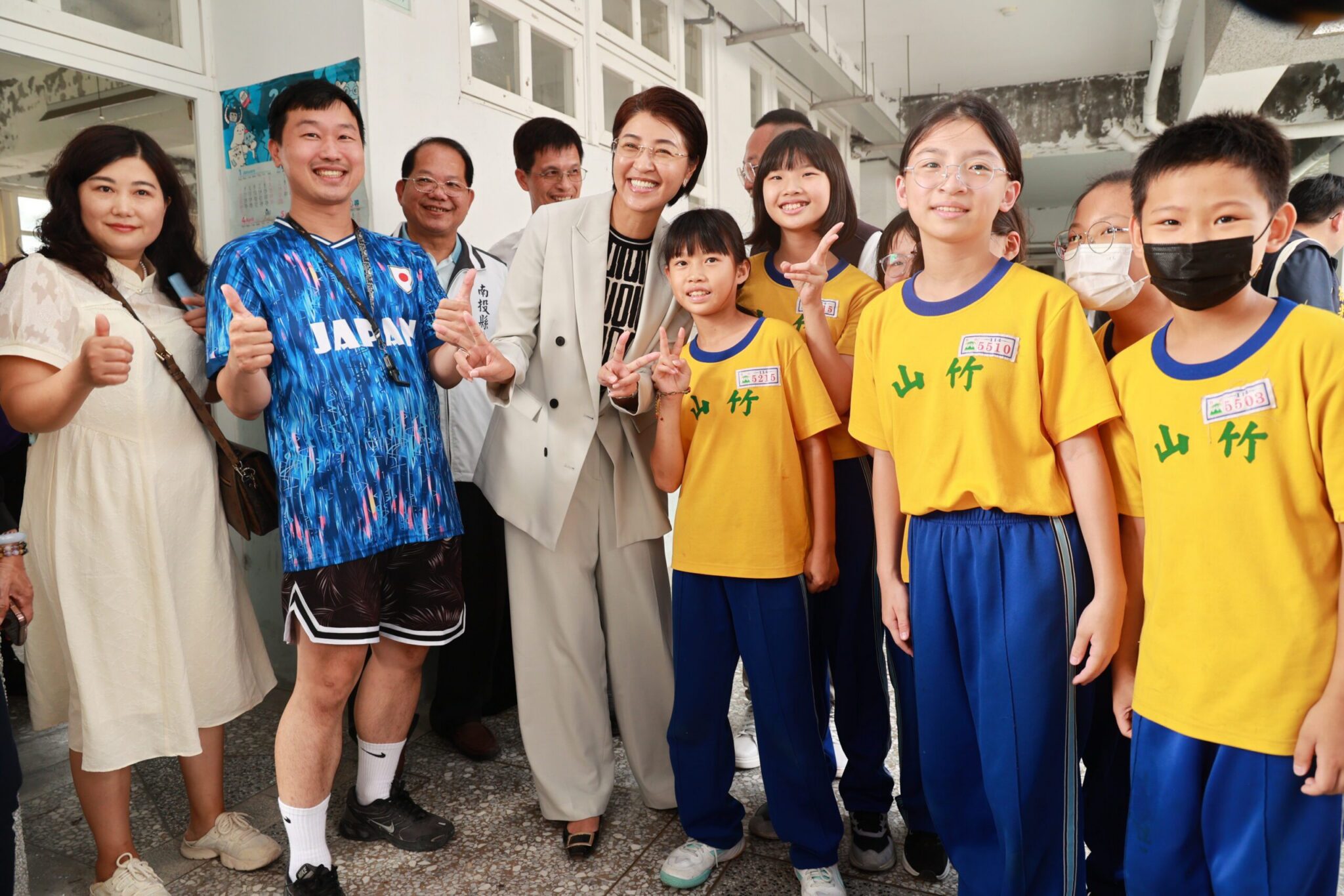 隨後,許縣長到竹山國小,看到921後興建的教室、走廊天花板,經過20多年歲月,已經油漆掉落,需要儘速整修,竹山國小校長林建言提出149餘萬元改善需求,許縣長立即請教育處積極協助翻修,打造舒適的學習環境。