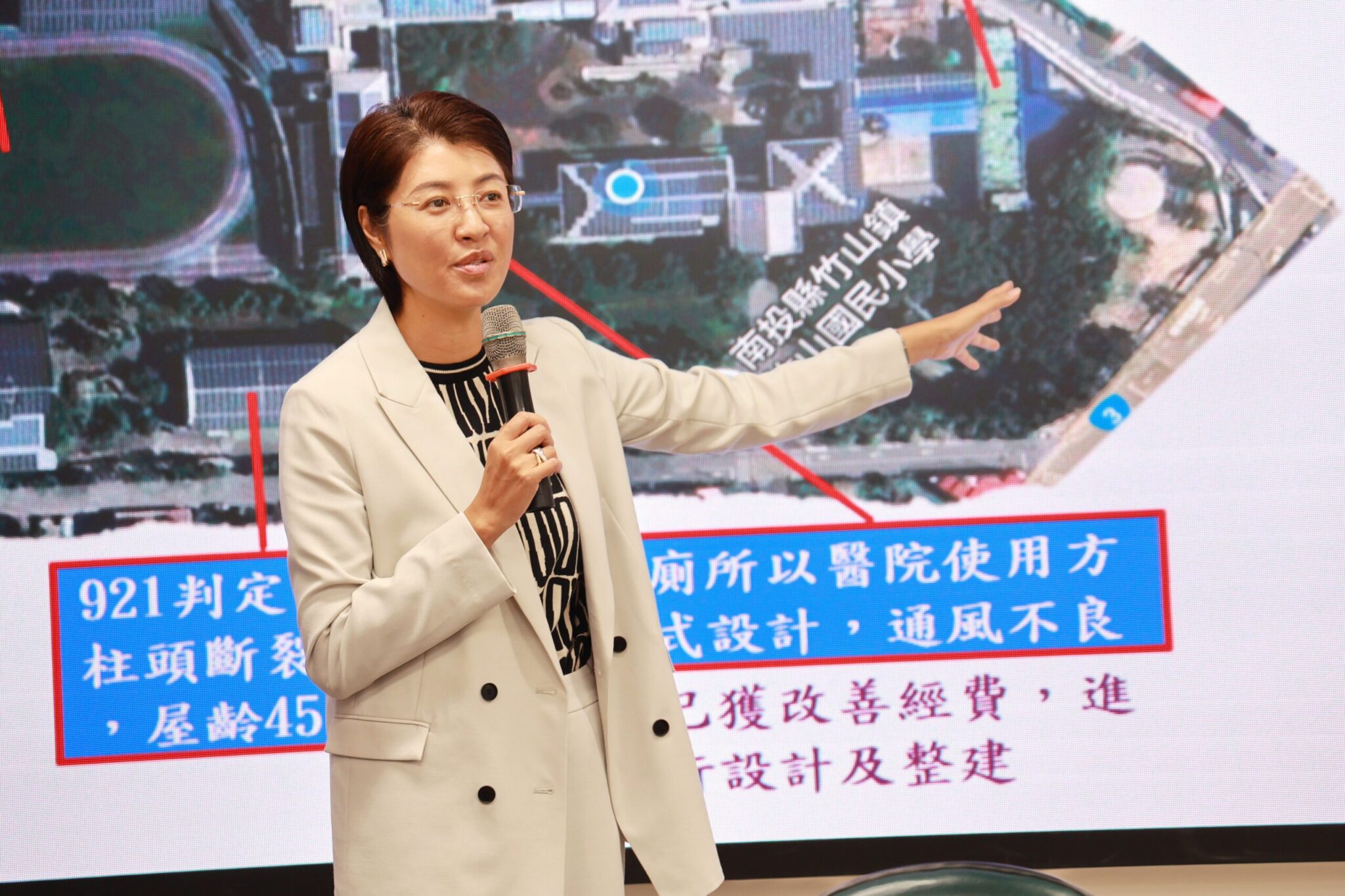 為提升教育環境,南投縣長許淑華30日勘查竹山、集集及水里3鄉鎮5所學校,並同意動支522萬餘元,整建學校跑道、改善校舍及更新視聽設備等,感謝老師作育英才,為教育努力付出。