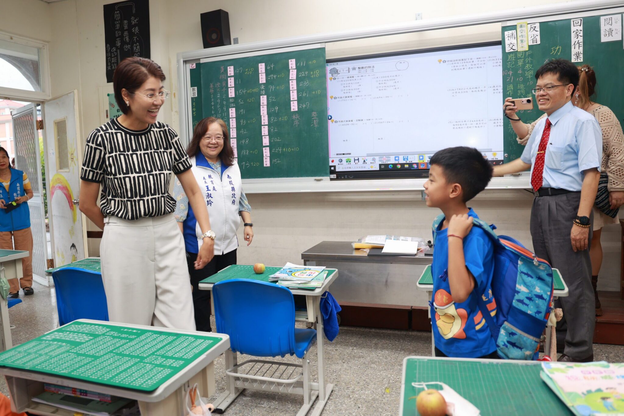 許縣長走進校園,學校校長簡報建設需求,家長會長、鄉鎮代表、村里長及地方人士聞訊而來,學生更是開心,不僅和許縣長合影,還紛紛要求簽名,看到孩子笑容,許縣長也是樂開懷。