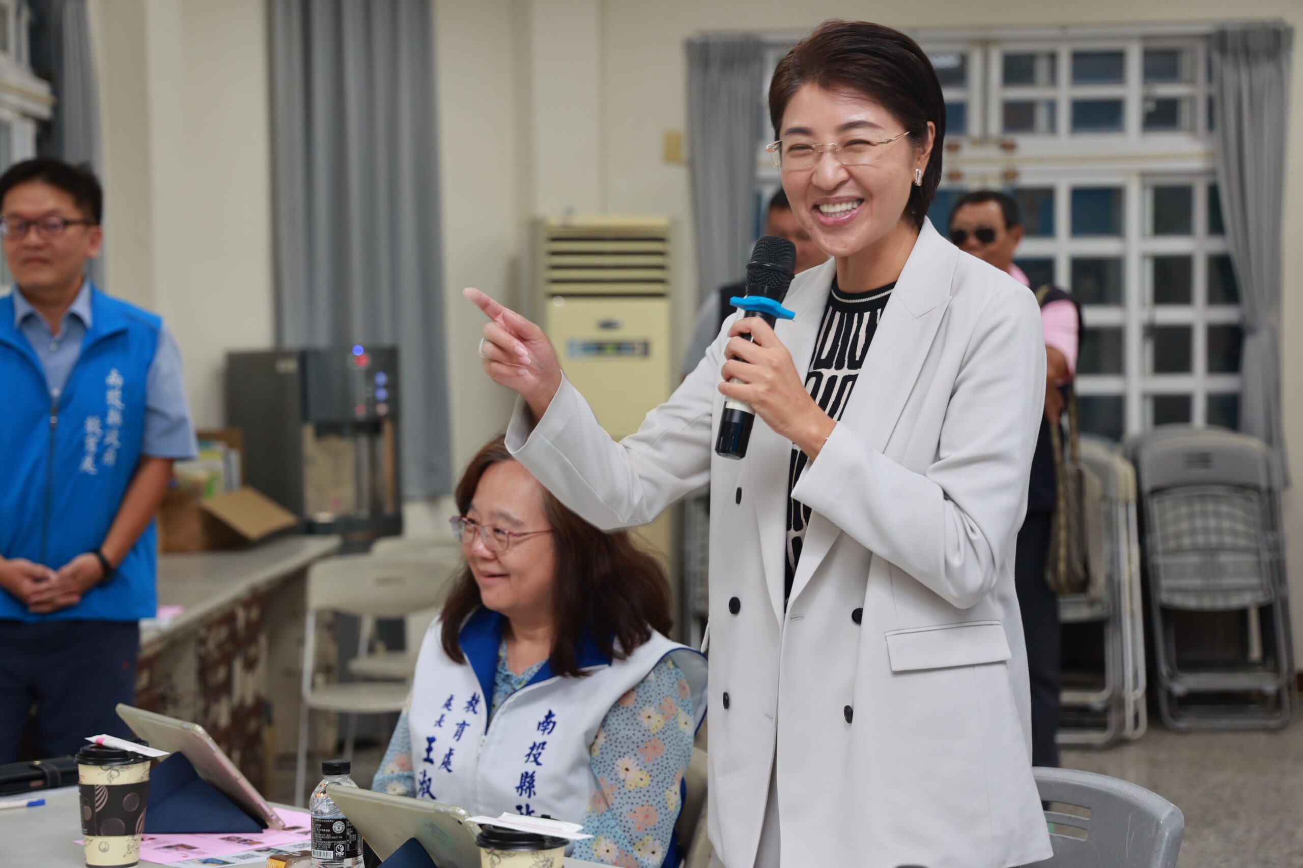 縣議會總質詢期間,許縣長上午在議會備詢外,30日下午由教育處長王淑玲陪同,走進竹山鎮鯉魚、竹山及社寮3所小學;隨後,轉往集集鎮永昌國小及水里成城國小,關心各校建設;縣議員蔡孟娥、黃春麟、陳淑惠等民意代表,也到場關心。