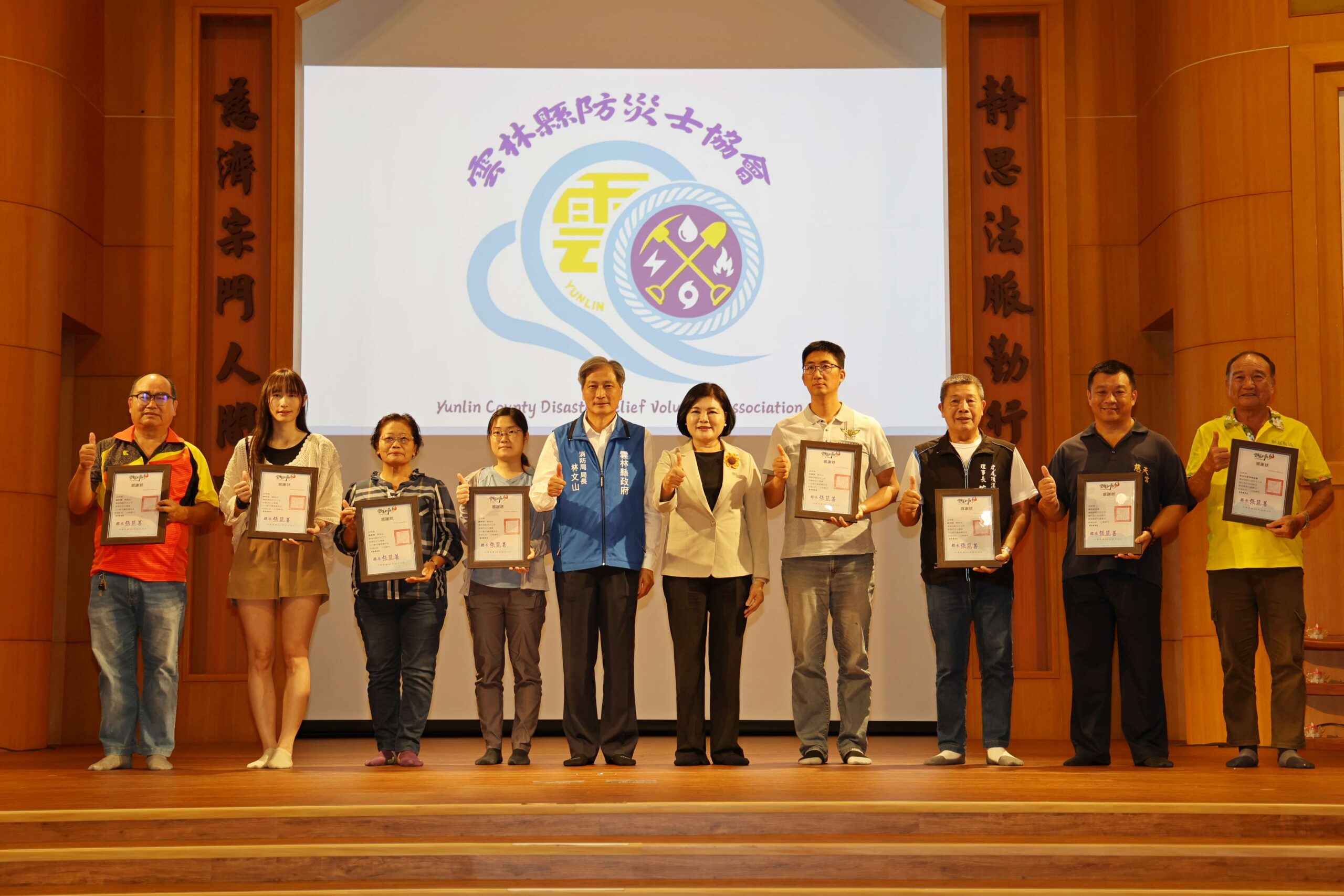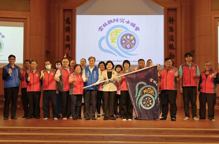 縣長張麗善下午在雲林縣消防局長林文山陪同下親臨主持「雲林縣防災士協會授旗儀式」,象徵本縣防災工作正式邁入新里程碑,並頒發獎項表揚績優防災士與防災企業,肯定他們在平時推動社區防災與企業自主防災上的努力與成就。