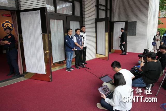 國民黨黨團三長在議場前召開記者會。(中評社)