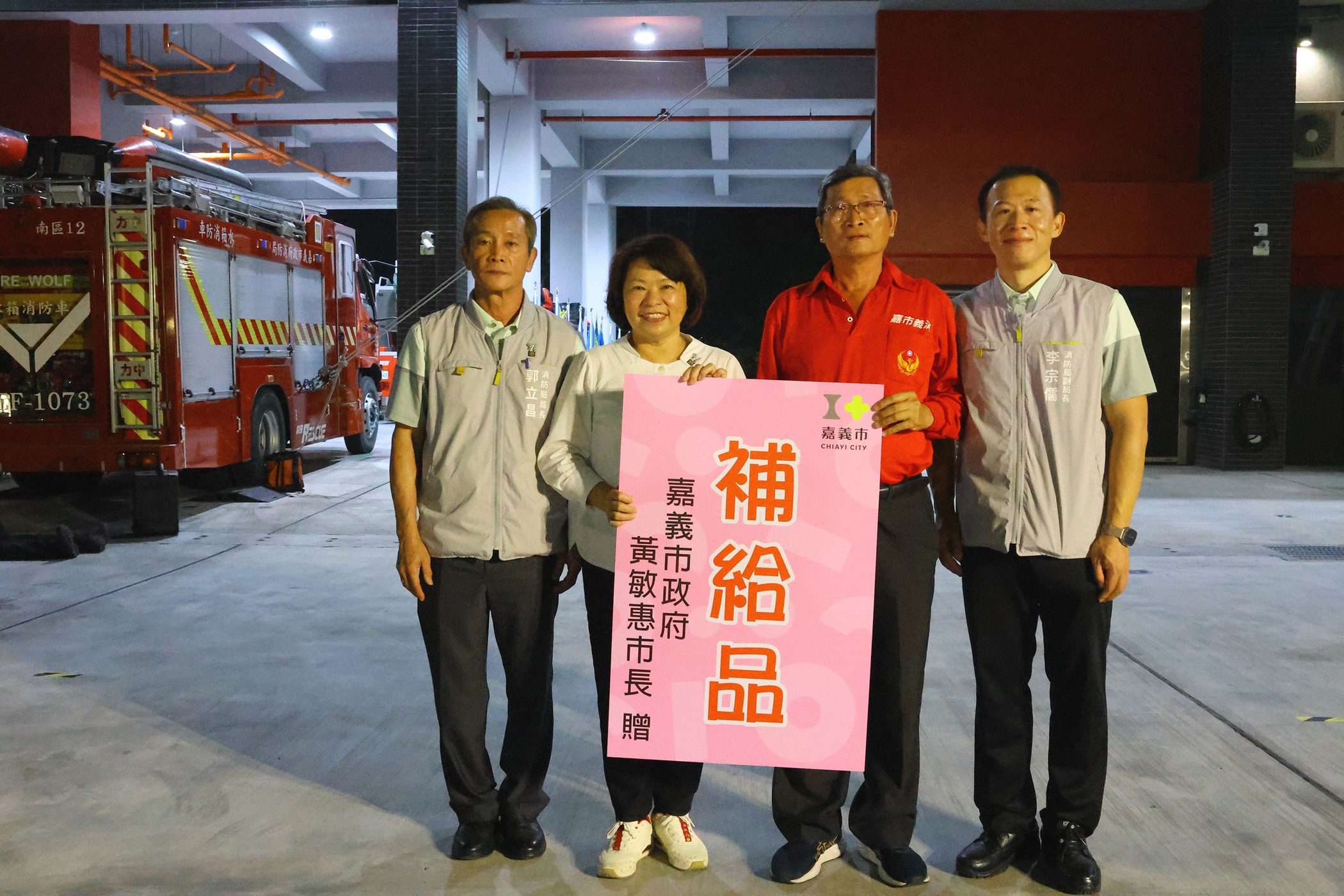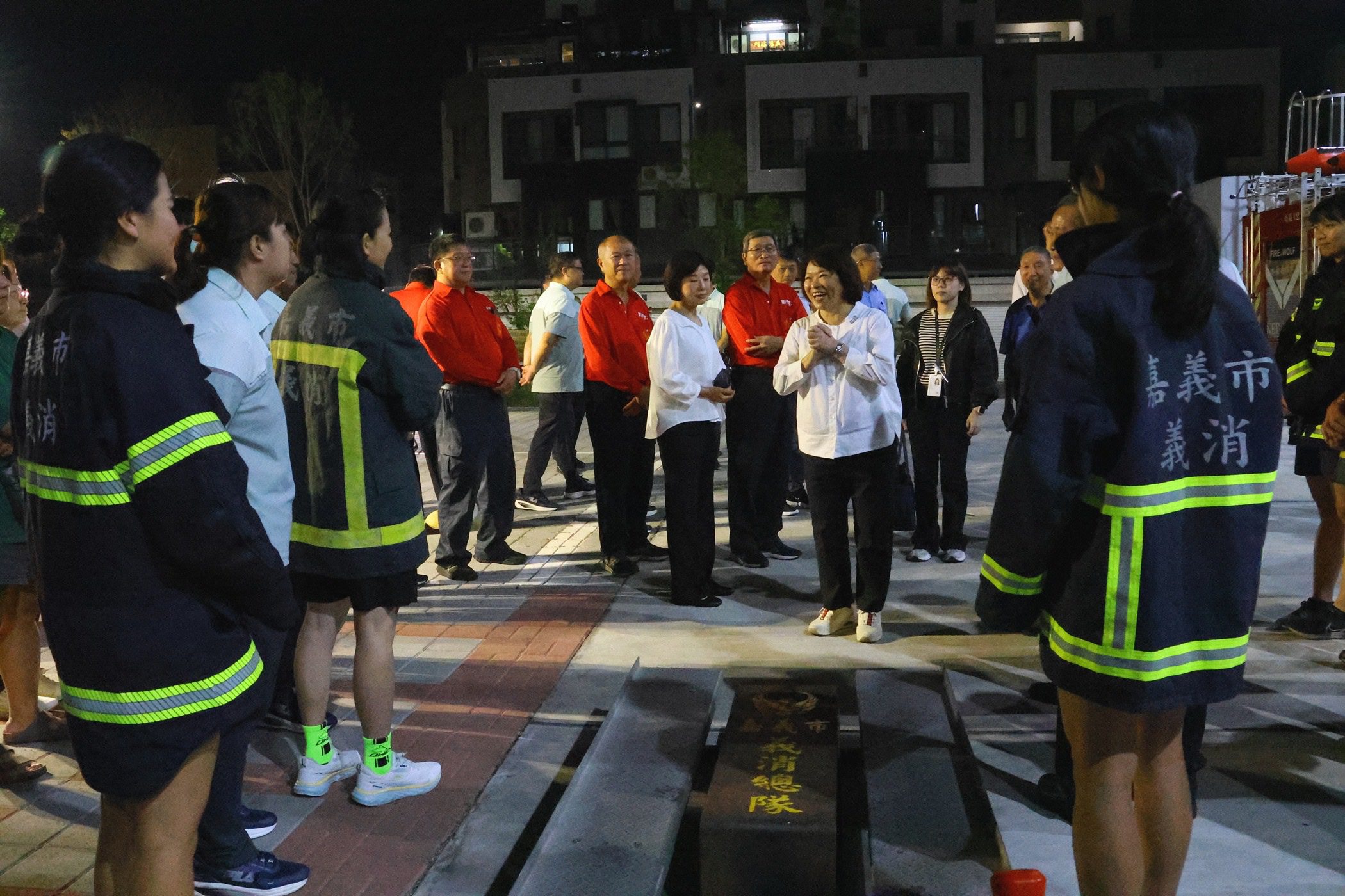 黃敏惠致詞時首先感謝義消弟兄姊妹成為城市安全的堅強後盾,平時默默付出、訓練不懈,在每一次災害現場都能看見他們與消防人員並肩作戰的身影,今年嘉義市遭逢百年一遇的丹娜絲颱風,義消更是在第一時間投入,是守護城市的堅定力量。這次代表嘉義市參加全國競賽,不僅展現專業訓練成果,更是嘉義城市韌性的象徵。