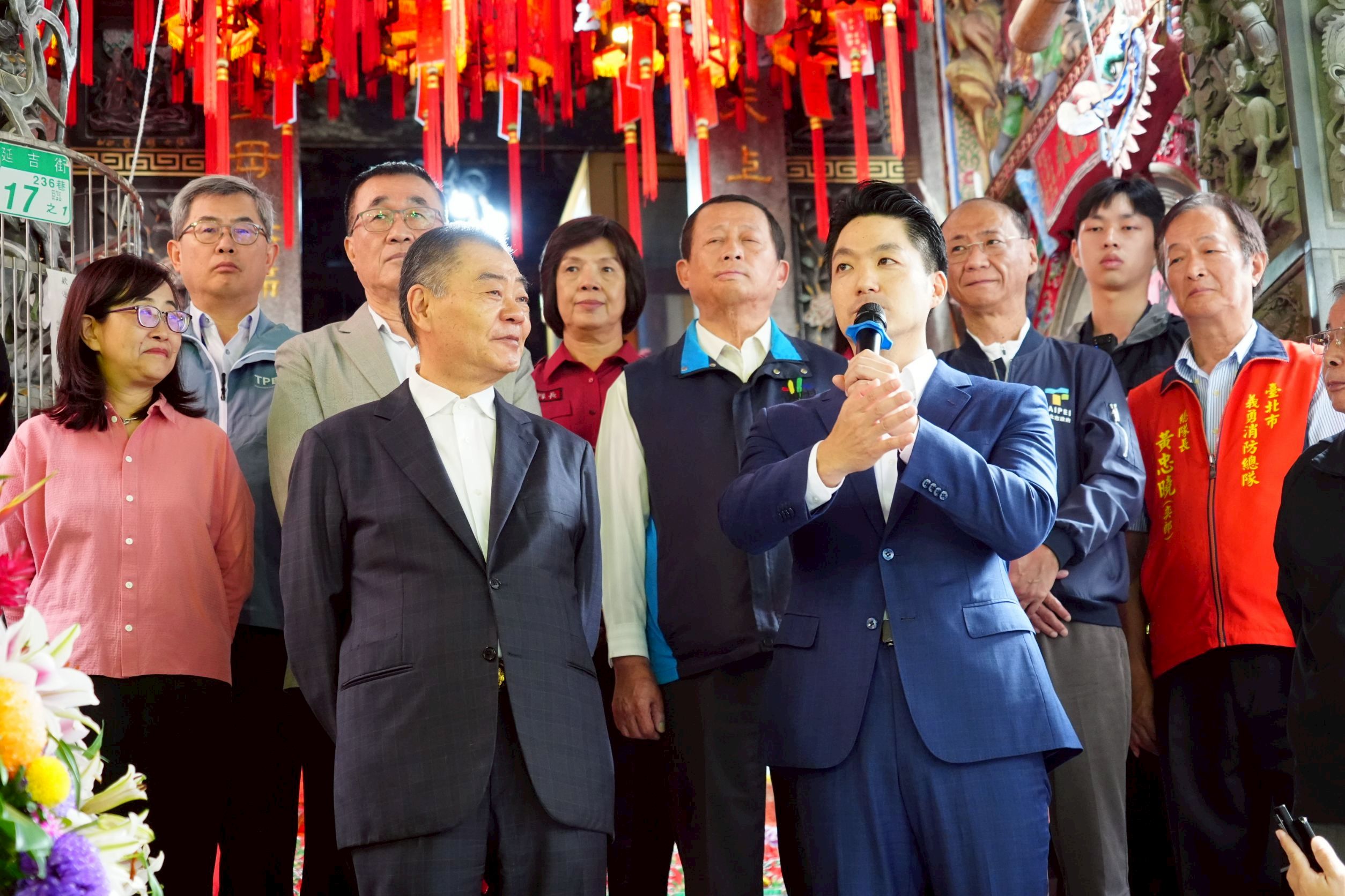 蔣萬安表示,今年適逢臺北市消防局成立30週年,自1995年火神爺移祀至火聖廟以來,火聖廟一直是消防同仁的精神寄託與守護象徵。多年來,在火神爺的庇佑下,消防局同仁堅守崗位、守護市民安全,展現高度的使命感與專業精神。