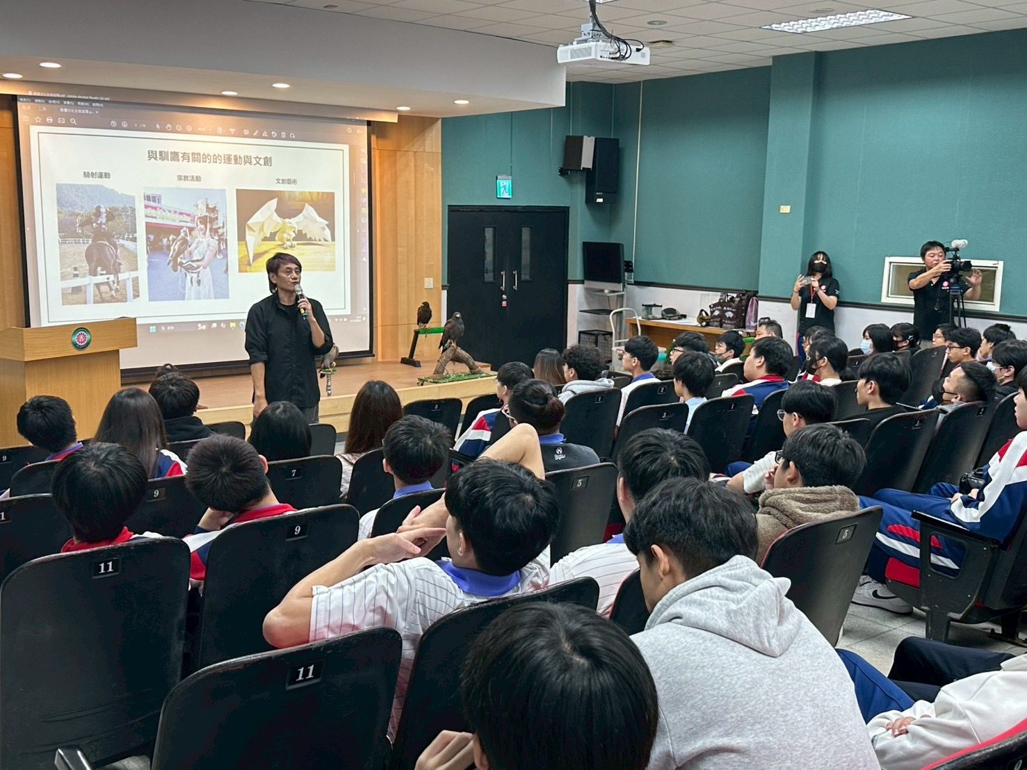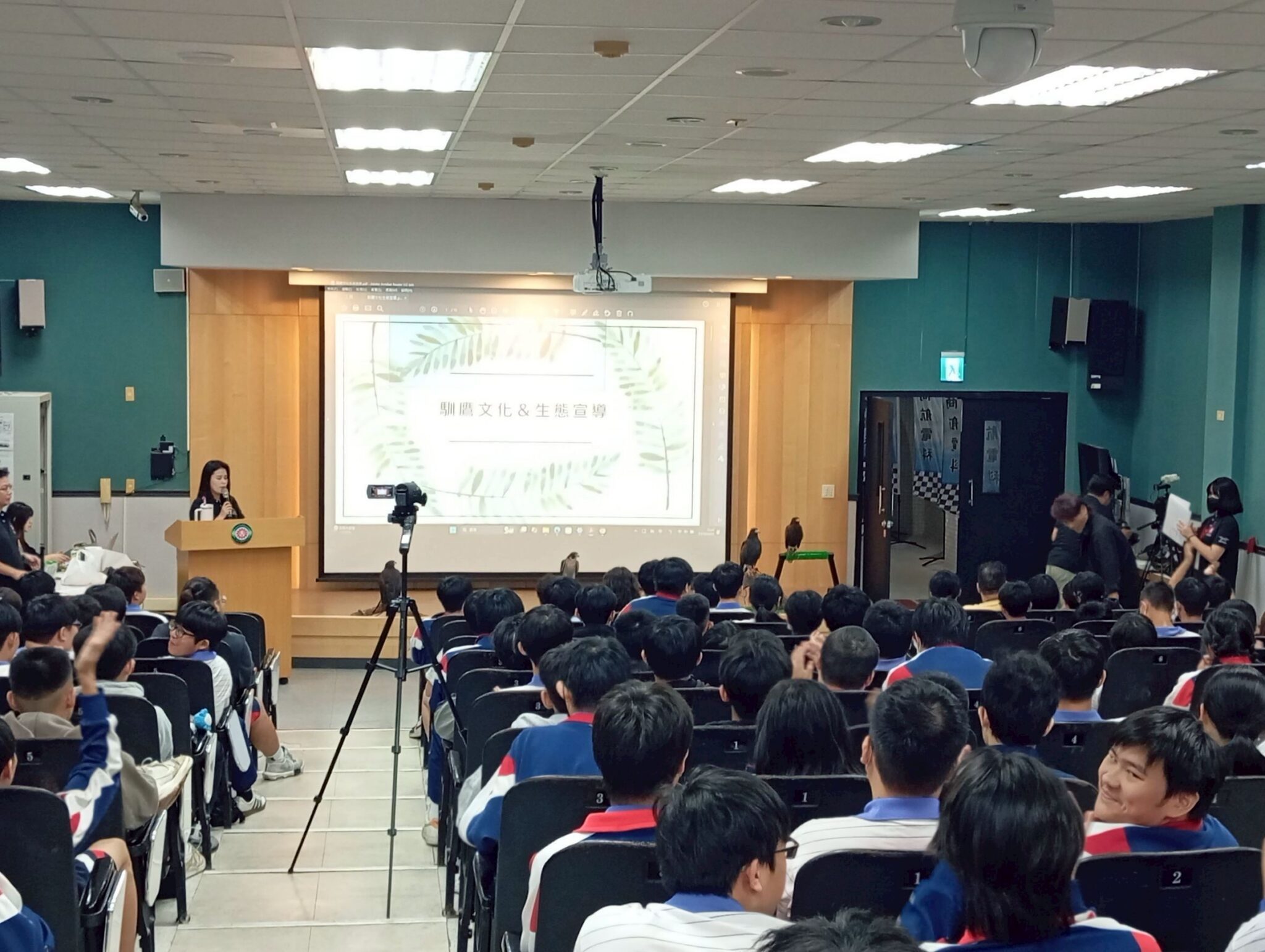 講座邀請「中華民國馴鷹協會」會長 陳建宏、「蘭陽綠野環境教育及保護協會」常務理事 江瑋銘,介紹目前國內開放飼養的猛禽物種(哈里斯鷹、遊隼),以及兩棲爬蟲(南美蜥、球蟒、玉米蛇)。並引入「特寵守護」的概念。兩位講師強調,特寵不僅是飼養興趣,更關乎生態平衡與永續發展。課程中也探討無毒農業、以猛禽驅鳥驅鼠的友善農法,以及外來物種對本土生態的衝擊,呼籲學生在飼養任何寵物前,務必審慎評估條件,並秉持「愛護生命、尊重生命」的原則。