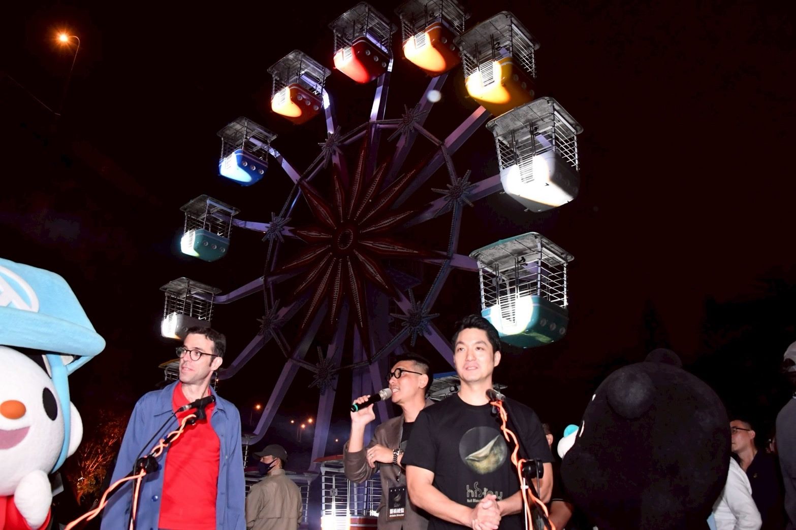 蔣萬安也向企業夥伴及所有藝術家表達感謝,指出正因他們的投入,讓今年十週年活動更添亮點與光彩。文化局特別規劃豐富的藝術作品,並選擇具歷史與文化意義的圓山場址及舊兒童樂園作為舞台,象徵臺北文化脈絡的延續與再生。現場除有首度開放的圓山坑道展區外,也能看到摩天輪聲光秀與旋轉木馬等經典元素,喚起市民滿滿的童年回憶。