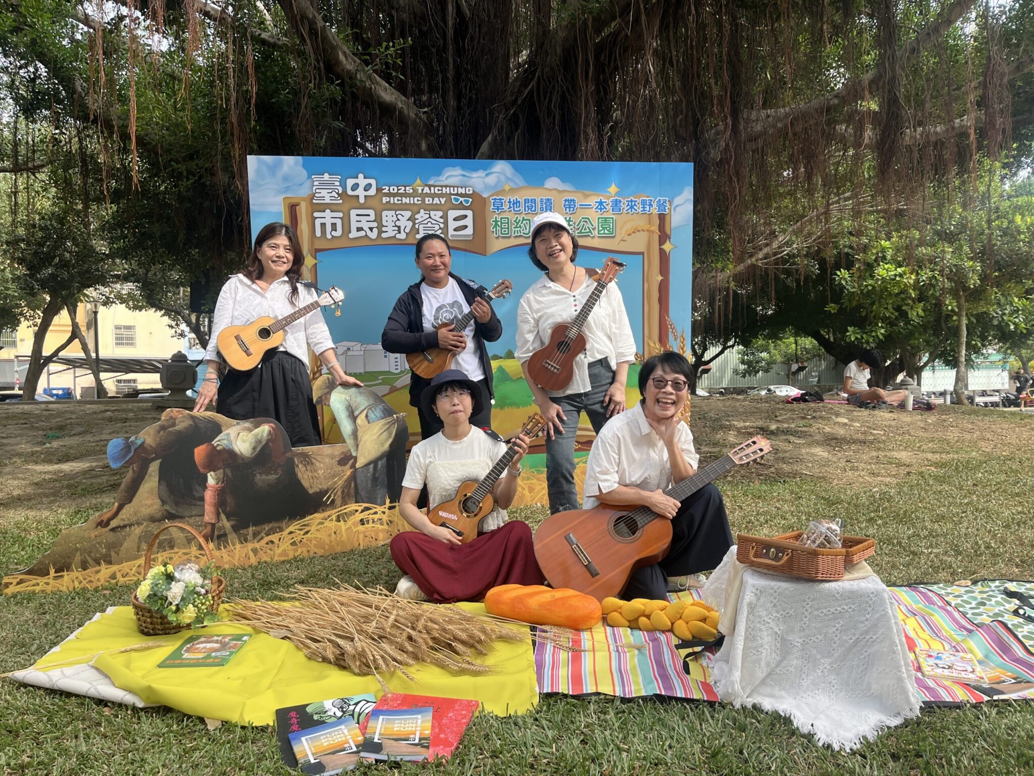 大雅區長林麗蓉補充,大雅野餐日在閱讀的主題下,融合音樂與藝術表演,邀請在地樂團登台演出,以溫暖旋律為草地增添節奏感。而最吸睛的莫過於「名畫重現」單元—今年以米勒經典畫作《拾穗》為主題背景,邀請民眾化身畫中人物進行cosplay,穿上田園風服飾、手持稻穗,在金黃草地間重現經典畫面,這在以小麥聞名全國的台中大雅,可謂是別具意義。這場藝術與自然的結合,成為熱絡的拍照打卡點,也象徵著大雅區民惜福與希望的精神內涵,有著勞動與閱讀並重的生活美學。