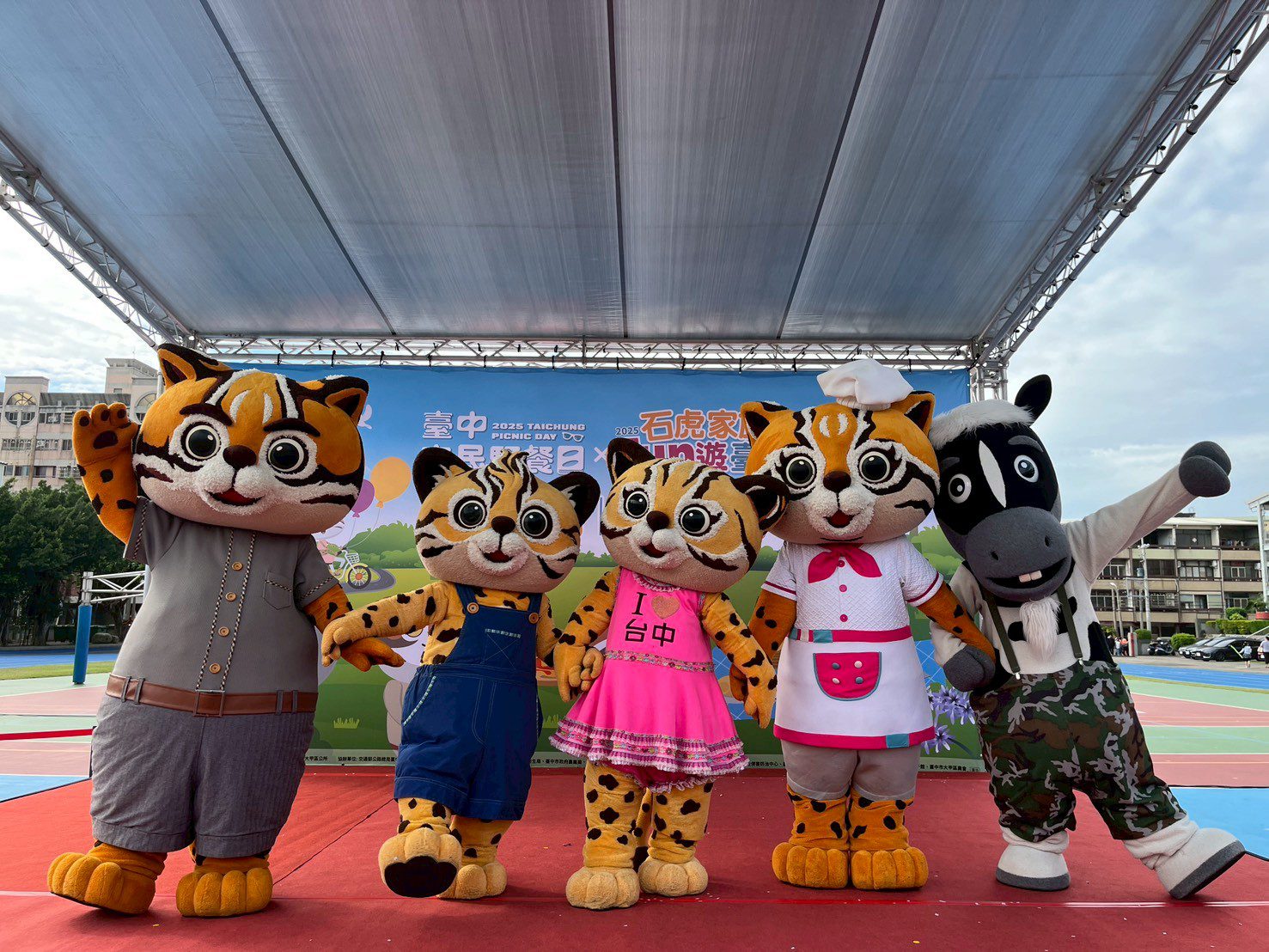 2025台中市民野餐日11月2日大甲場在大甲國小圓滿落幕!全市唯一「石虎家族與歐米馬」5隻吉祥物全員出動,和大小粉絲們一起在草地上享受閱讀、輕食、音樂表演,吸引逾3000名粉絲到場,全場一起萌翻大甲!
