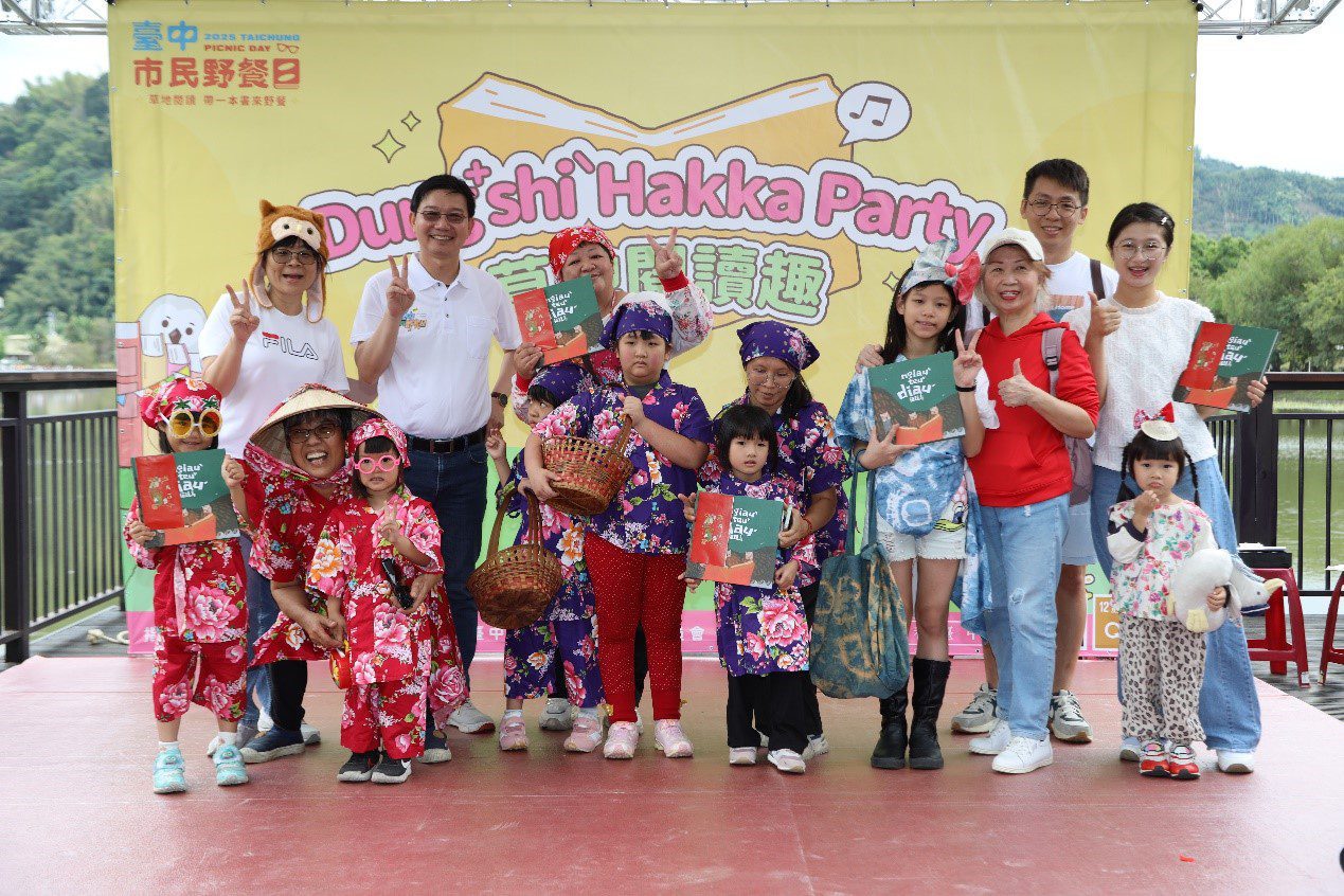 2025台中市民野餐日今(2)日於東勢林業文化園區盛大舉辦DungShi Hakka Party,結合了閱讀、客家文化與親子互動,由客家事務委員會和東勢區公所共同舉辦,並由農業部林業及自然保育署台中分署協辦,本次主題為草地閱讀,每位參與者帶著一本書、一副墨鏡,還有最愛的人,一起在陽光與樹蔭下享受悠閒的野餐時光。