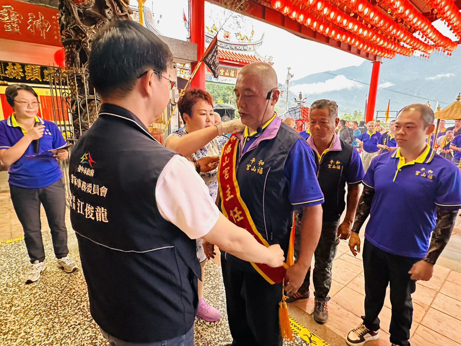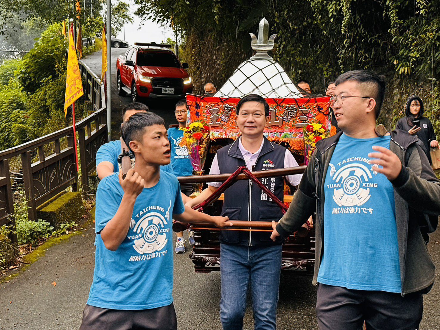 江主委表示,客家文化重視敬天、重祖、敦親睦鄰的傳統,此次福山宮舉辦進香活動,不僅展現地方宗教信仰的凝聚力,也呈現客庄居民對傳統信仰與家庭和諧的重視,福山宮長年致力於推動客家文化,讓信仰與文化共融發展,成為和平地區重要的精神信仰中心,特別代表市長盧秀燕前來祝福此行順利平安。