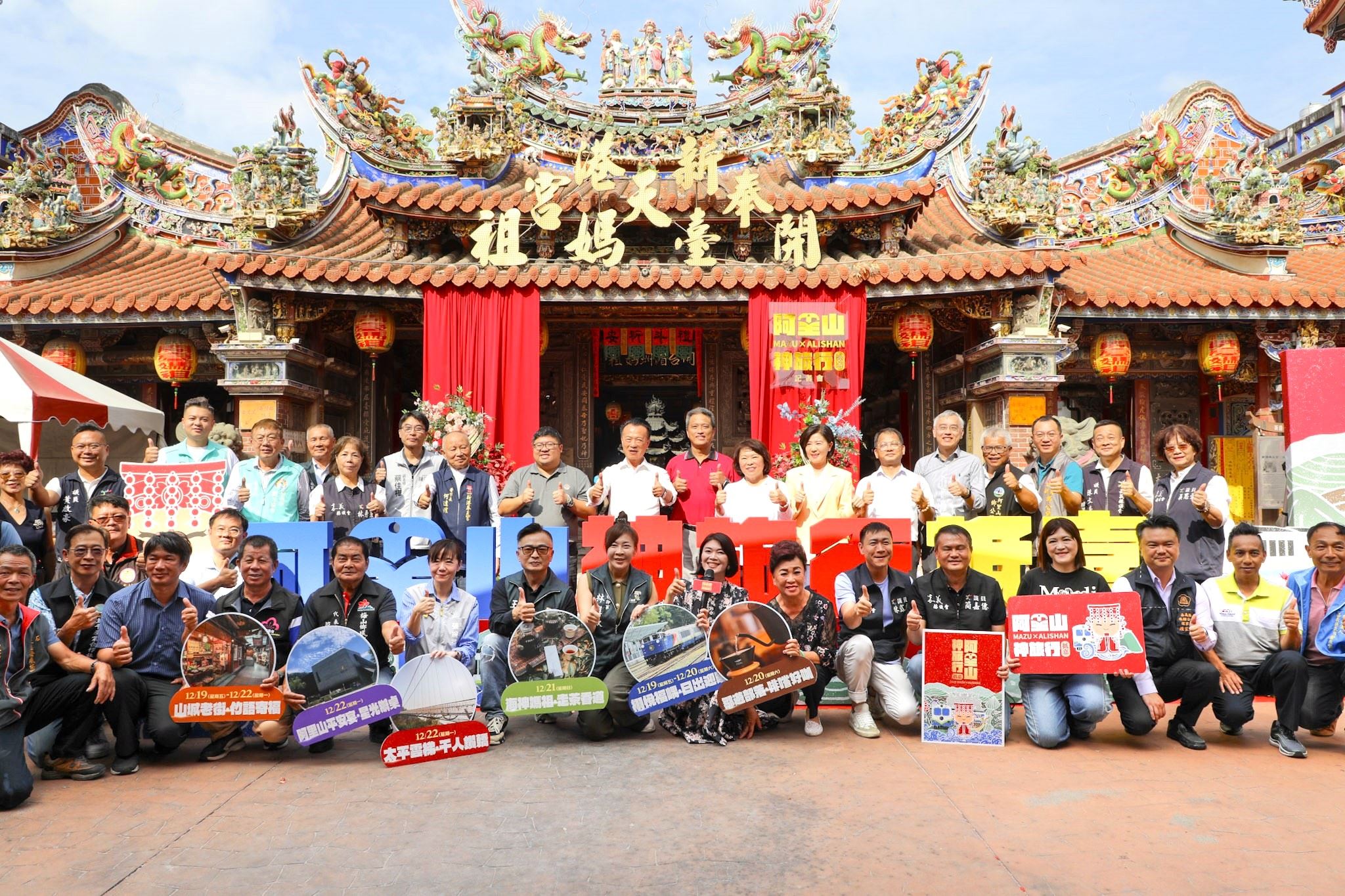 為推廣嘉義山海觀光、結合信仰文化與在地產業,交通部觀光署阿里山國家風景區管理處與財團法人嘉義縣新港奉天宮攜手合作,精心策畫「阿里山神旅行抵嘉」活動,今(4)日在新港奉天宮廟前廣場舉辦宣傳記者會,嘉義縣長翁章梁、嘉義市長黃敏惠、立法委員蔡易餘、王育敏及各級民意代表等貴賓共同出席,見證此次活動開跑。