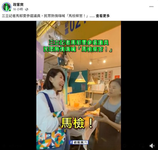 馬郁雯掃街民眾大喊“馬檢”,政客爽臉書粉專酸,馬郁雯總能從檢方那拿到消息來源,神奇的能力讓人嘆為觀止。(照片:政客爽臉書)