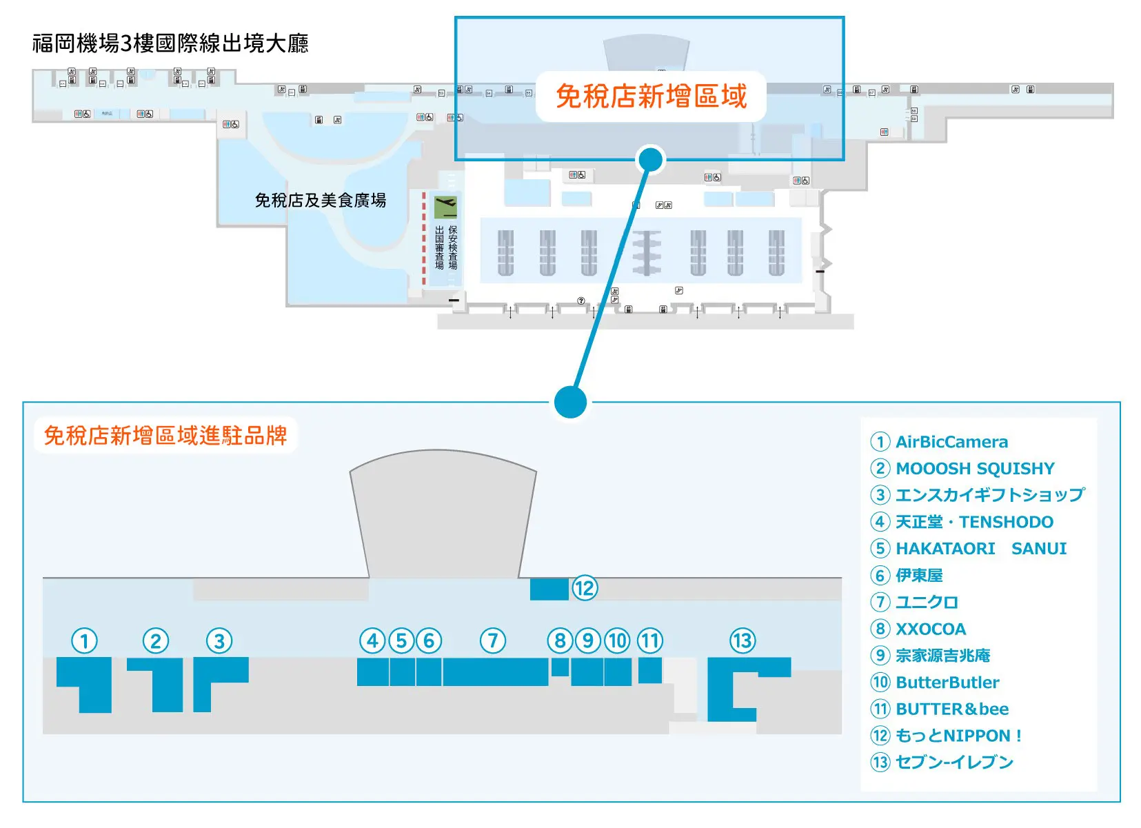 除了免稅店全面改裝外,福岡機場國際線航廈自2022年啟動的增改建工程,也將於2025年底全面完工。