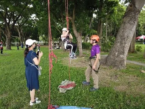 國立嘉義大學森林暨自然資源學系聘請專業教練挑選堅固適合大樹,透過教練和安全設備輔助,讓大人小孩都能安全開心的體驗,除了發揮身體協調性,也能增加親子互動及挑戰自我。