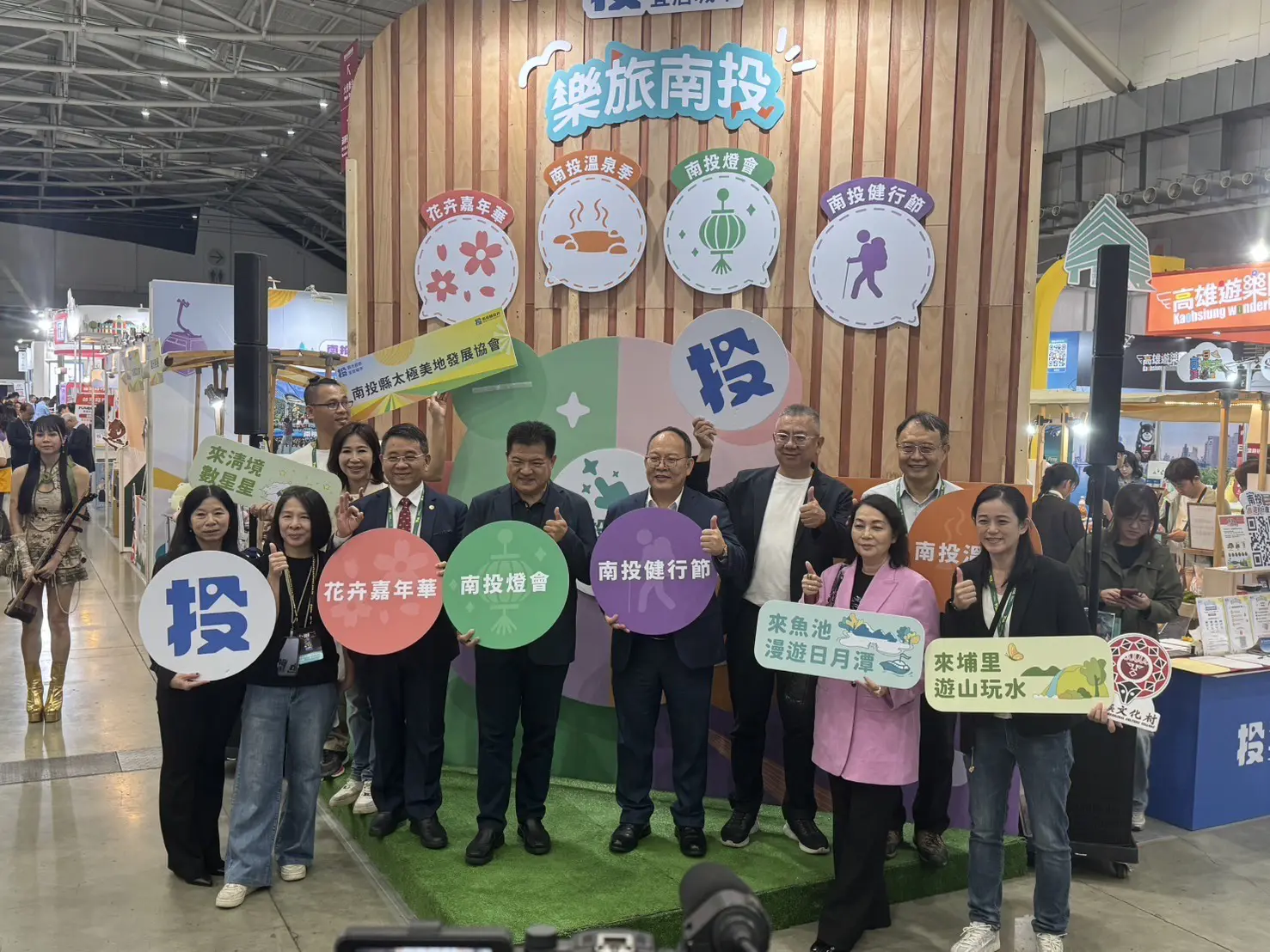 南投縣長許淑華表示,南投秋冬旅遊資源豐富,除了目前進行的南投健行節、溫泉季活動以外,11月底花卉嘉年華也將登場,明年初則有2026南投燈會,邀請大家可以搭著台灣好行低碳永續遊。為促進秋冬觀光行銷,縣府也正舉辦「南投旅遊好康月」,只要11月15日之前來南投旅遊消費滿500元,登錄發票即有機會抽特斯拉電動汽車。透過旅展縣府也優先發布2026南投燈會訊息,南投燈會第11周年將於2026年2月14日至3月8日盛大舉行;今年主題為「馳光萬馬奔投」,象徵馬年的朝氣與活力。燈會將以更磅礡的燈區設計、炫彩煙火秀與創新光之水舞展演帶來震撼視覺饗宴,並搭配精彩的新春特別演出,絕對是年度最受矚目的節慶盛事。