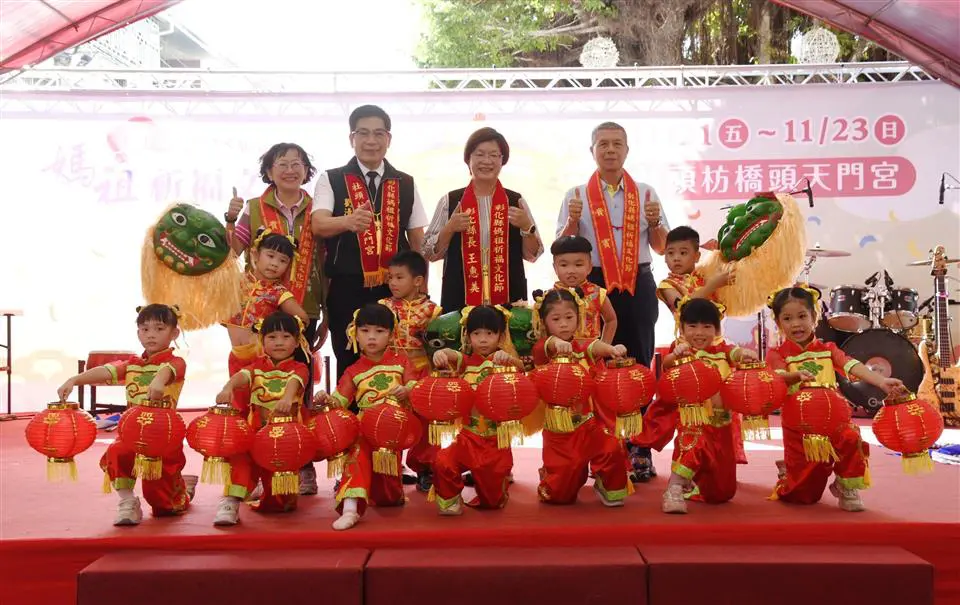 王縣長指出,感謝枋橋頭天門宮及12間宮廟齊心努力,將媽祖宗教信仰與在地產業進行串聯,讓民眾感受媽祖文化的同時,也能了解豐富的在地特色。感謝議長謝典霖及所有議員的支持,還有地方公所、代表會與各單位的鼎力相助,媽祖祈福文化節越來越精彩,歡迎大家共襄盛舉。另外「彰化GO購」只要消費滿500元即可上傳發票抽大獎,為響應普發現金1萬元特別延長到今年12月31日,再加碼抽1台SUZUKI JIMNY、100名現金1萬元及iphone17等多項獎品,媽祖文化節這三天在社頭消費滿額即多贈一組抽獎序號,歡迎大家拜媽祖、求平安,把錢花在彰化抽大獎,一起帶動地方經濟。