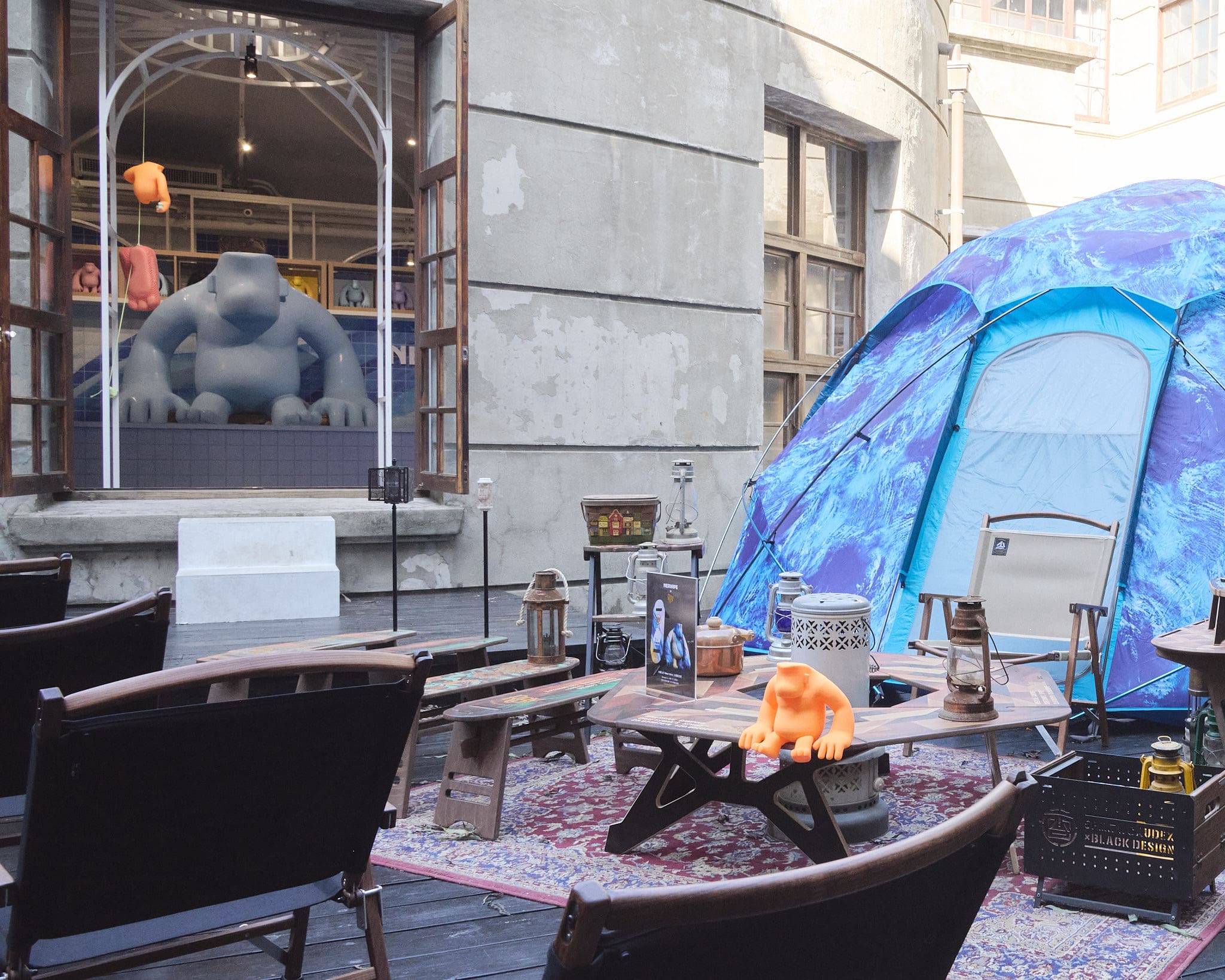 圖說:松菸《猿澡堂》以互動模組與露營場景,將公仔、科技與戶外生活串連成一場可參與的潮流祭典。(Nervape提供)