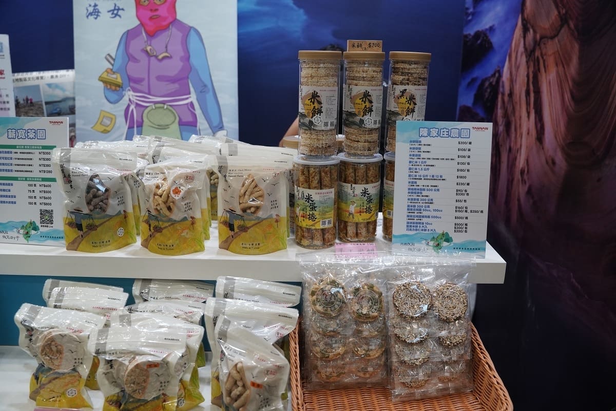 馬祖國家風景區則將在地風味原汁原味帶到現場,特別空運多項馬祖限定伴手禮與名產來臺展售,包括捲捲酥、老酒薯條、老酒蝦餅、黃魚薯條、淡菜油條、金銀花糖、高粱拿鐵及「藍眼淚高粱特調」等特色產品。這些以馬祖在地食材如淡菜、黃魚與老酒入料製作的創意商品,展現馬祖獨有的風味與文化魅力,也成為展館現場的人氣焦點。