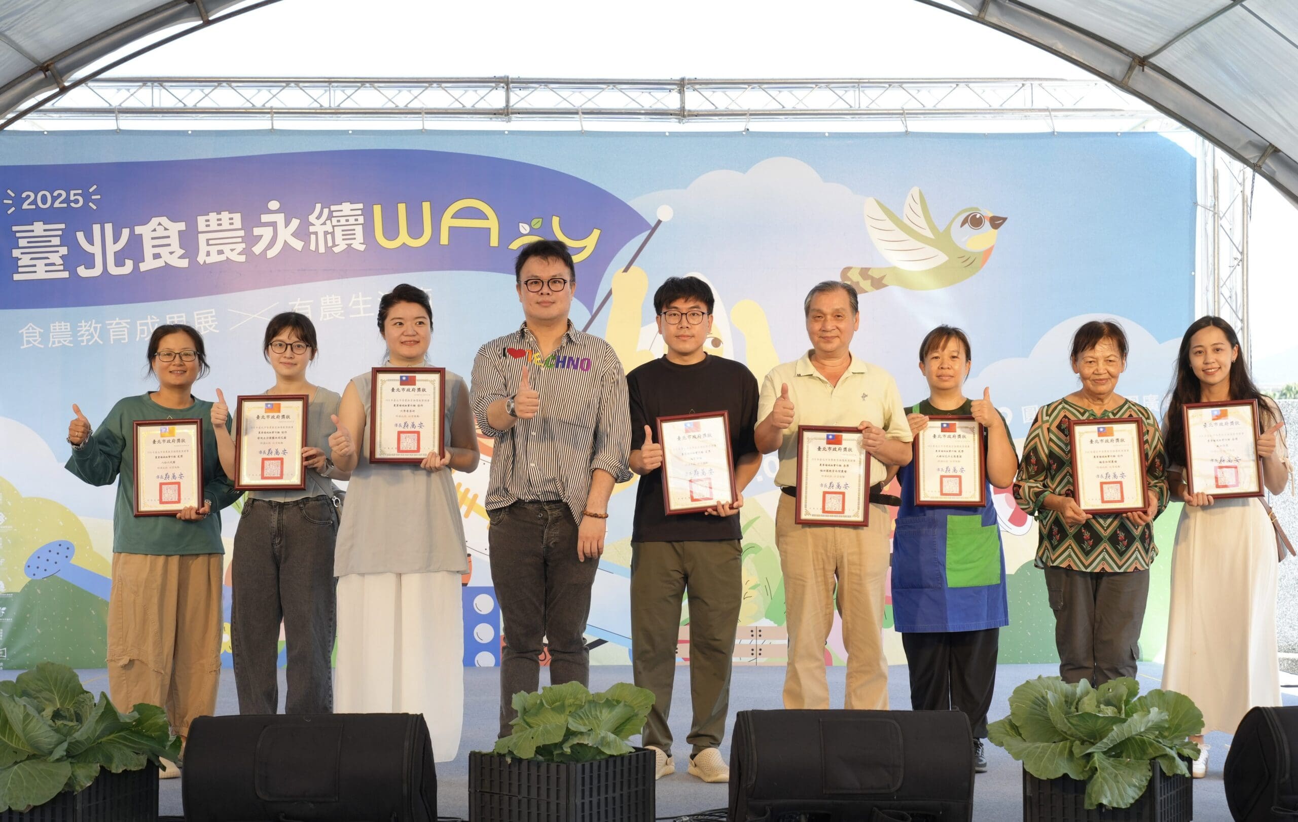 同場舉辦「114年臺北市食農教育推廣」教案競賽頒獎,公開表揚得獎單位,該競賽由產業局與教育局共同辦理,為鼓勵教育工作者、農場及市民設計兼具創意與實用性的教案,讓食農教育從校園與農業場域延伸至日常生活。競賽成果亦將於活動期間展出,並彙整上架至「臺北食農教育推廣平台」,促進教學資源共享與實作內容精進。
