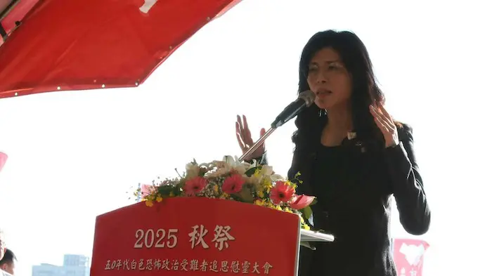 台灣地區政治受難人互助會今天下午2時在台北市萬華區馬場町紀念公園舉行“五○年代白色恐怖秋祭追思慰靈大會”,主題為“銘記歷史、緬懷先烈、兩岸同心、振興中華”,鄭麗文前往致詞、獻花。來自全台各地政治受難人家屬代表等近上千人參加。