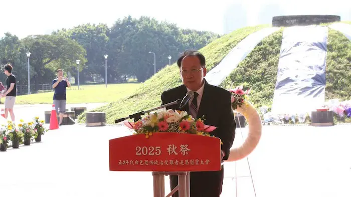 2025年“五○年代白色恐怖秋祭追思慰靈大會”在老政治受難人、家屬與來賓為犧牲烈士獻花中圓滿落幕。(照 :政治受難人互助會提供)