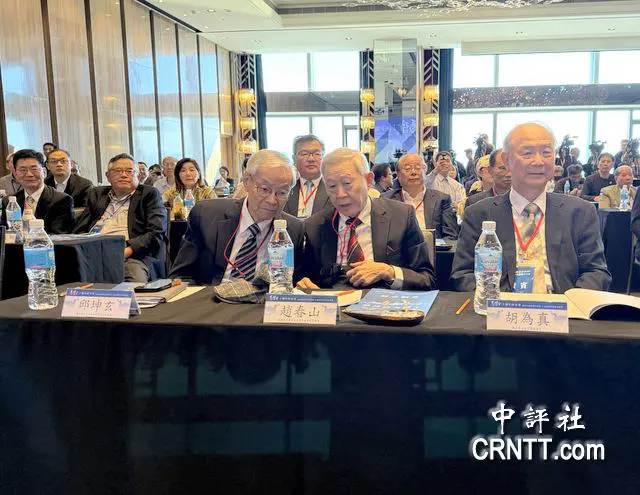 政治大學東亞研究所名譽教授邱坤玄與淡江大學中國大陸研究所榮譽教授趙春山交換意見。(中評社)