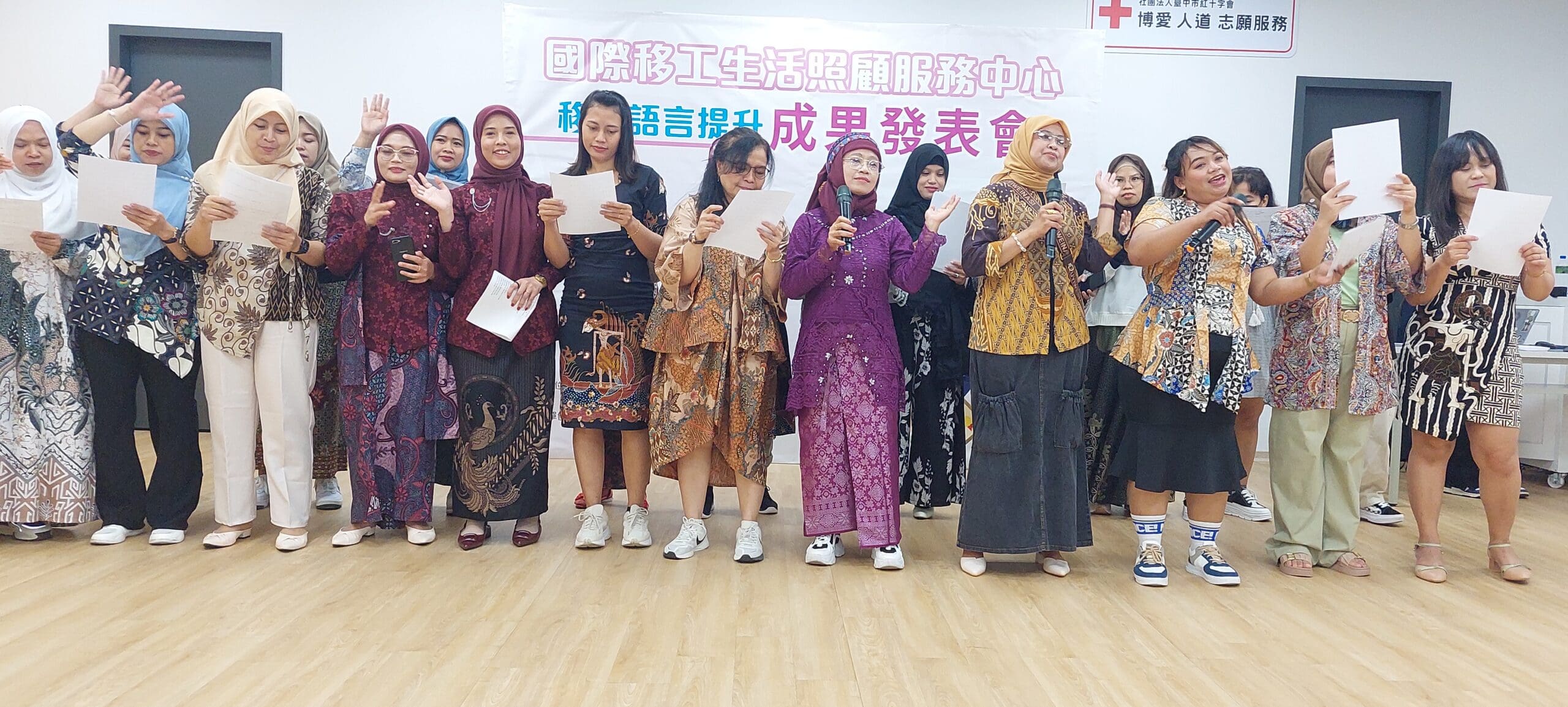 台中市勞工局自今年2月起陸續開辦14班移工中文課程,已全數順利結訓。日前於東協廣場10樓舉辦「移工語言提升成果發表會」,學員演唱「童話」、「流星雨」、「心太軟」等中文歌曲並展示作品,展現學習成果並促進多元文化交流。其中,印尼移工台語班學員更以一曲「家後」,獲得滿堂喝采。勞工局期盼藉由成果發表會,鼓勵更多移工踴躍參與語言課程。