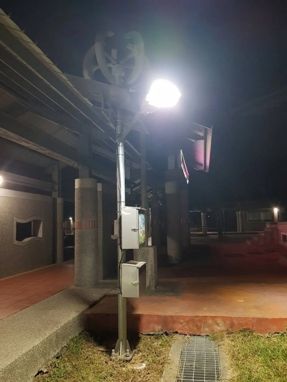 此次設置兩組的智慧路燈可利用風能與太陽能雙重來源儲電,在夜間自動啟動照明,不受天候限制,有效節能減碳。學校特別將路燈設於夜間進修部學生的主要通行動線上,分別是校門口與教學大樓、教學大樓至專科大樓之間,讓冬季夜晚的校園更加明亮、安全,也讓最晚放學的學生們倍感溫馨。