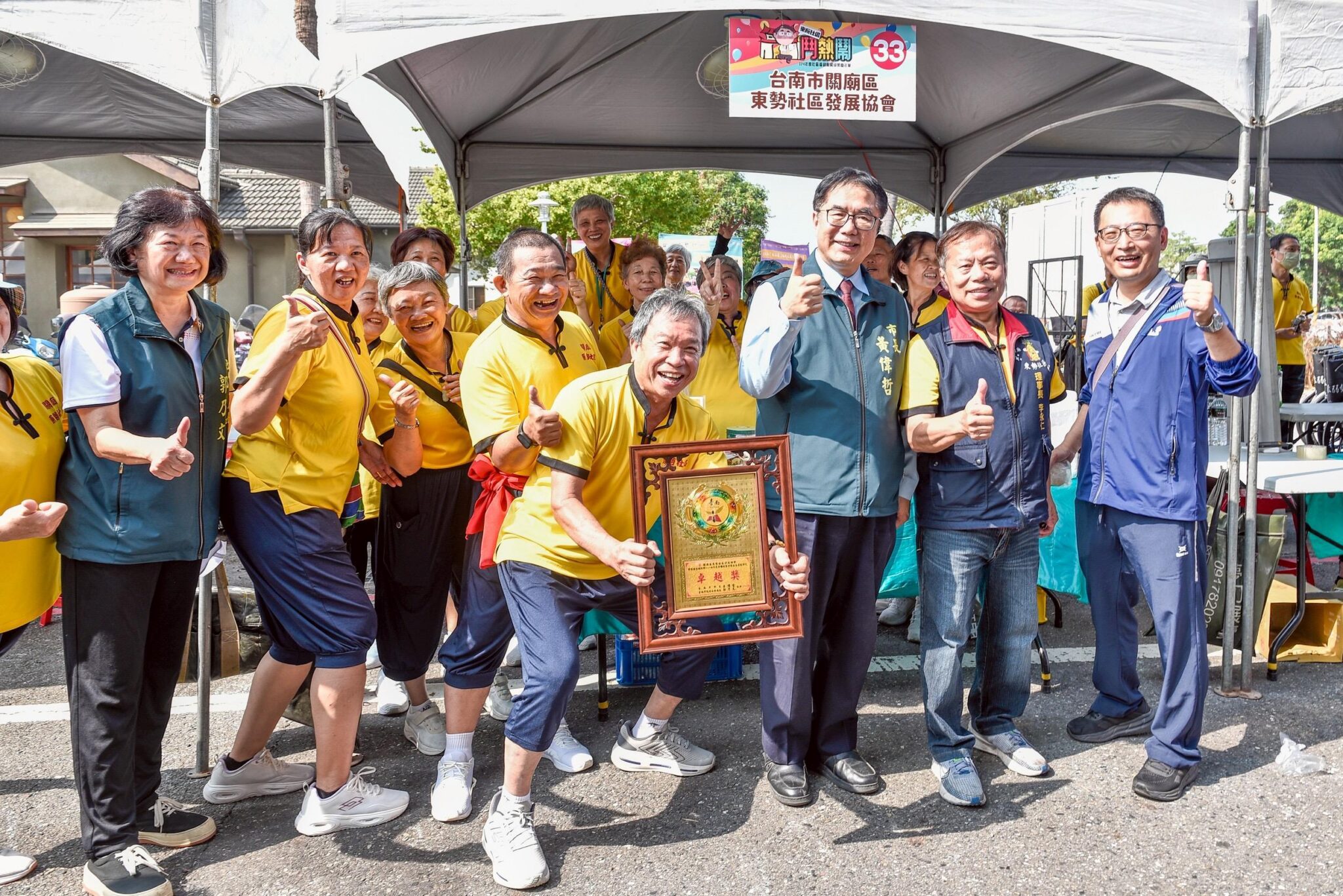 為落實黃偉哲市長推動「社區永續發展」及「福利社區化」的施政願景,臺南市政府社會局於9日上午在水交社文化園區舉辦「社區福利服務成果嘉年華-『來阮社區鬥熱鬧』」活動,現場邀集臺南市各社區發展協會及相關社福團體共同展示社區福利服務成果,並也透過互動體驗活動讓民眾認識及瞭解社區特色、文化與產業發展,黃偉哲市長也在社會局長郭乃文的陪同下,親臨現場與社區夥伴鬥熱鬧,同時親自頒獎給7個榮獲衛生福利部114年度社區發展工作金卓越績優社區,並與社區共同攜手啟動「來阮社區鬥熱鬧」活動序幕,巿議員王家貞、許至椿、沈震東、林美燕、李啟維等人皆親自蒞臨現場與社區同樂,以及立委林俊憲、陳亭妃、議長邱莉莉及市議員林冠維、楊中成、蔡淑惠、盧崑福等服務處代表也出席祝賀。