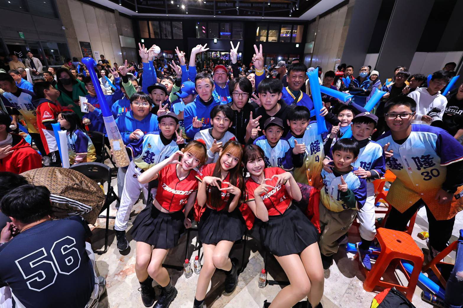 球場上的精彩比賽搭配場外的熱情應援,讓這場直播派對更具臨場感!當晚,超人氣職棒啦啦隊成員蘿拉、寧寧、馬妹接連登場,帶來精心編排的應援舞蹈與口號,全場球迷跟著節奏揮舞加油棒,氣氛嗨到最高點。尤其當中華隊轟出全壘打時,啦啦隊更是帶動全場高呼應援口號,讓文化中心瞬間變身為基隆最火熱的棒球殿堂。