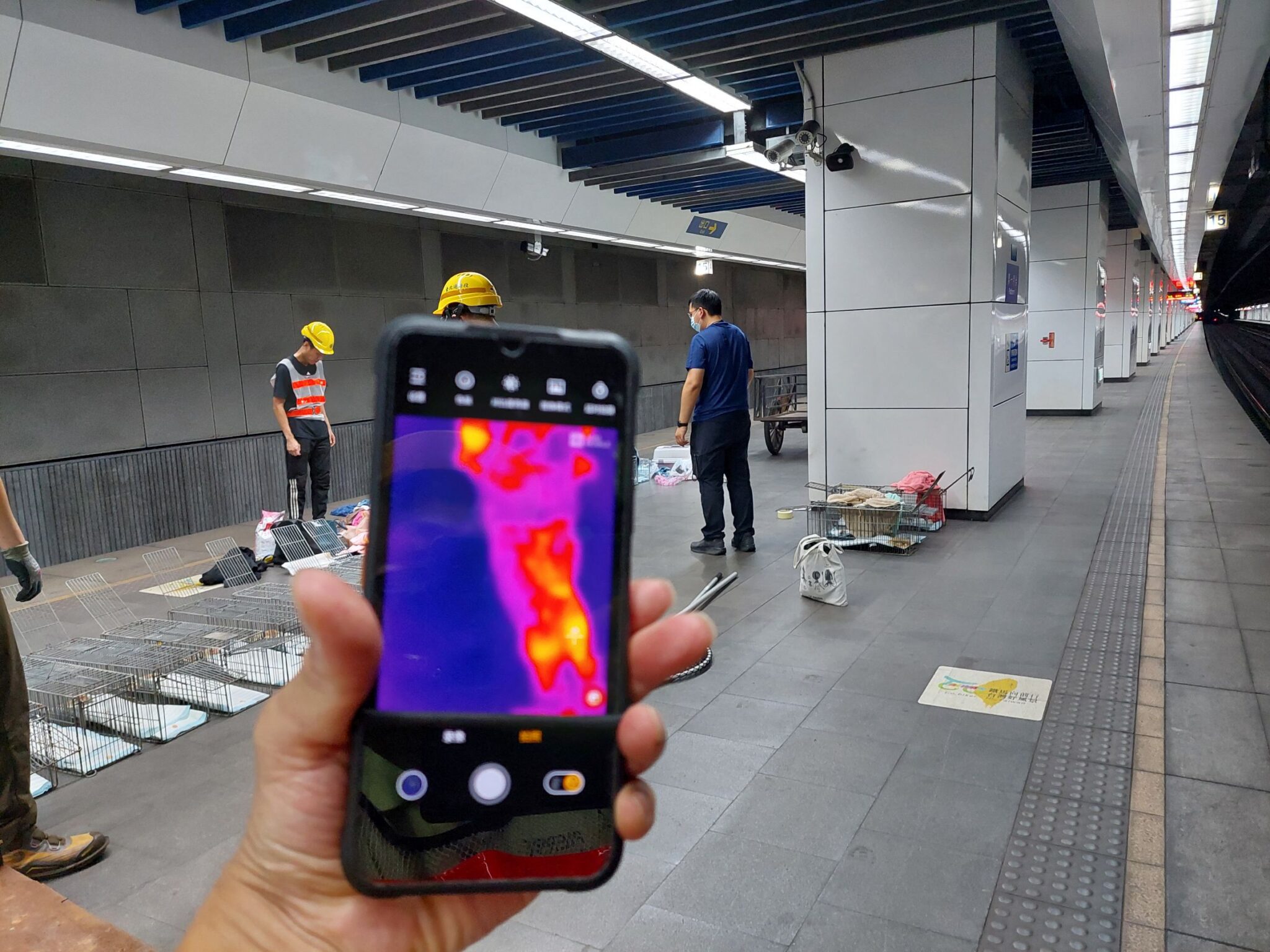 動保處秉持救援及保護動物生命之宗旨,自通報(27)日起即派員前往車站月台搜尋,然為配合臺鐵安全規定及作業需求,並先放置2具誘捕籠試圖誘捕未果,續與臺鐵研議於夜間軌道斷電維護時段,分別派員於11月5日、6日連續二日凌晨1至4時,由臺鐵人員帶領以徒步方式於松山站至南港站及臺北站至松山站間仔細搜索,察看可能之貓叫聲,貓眼金屬反光及貓尿痕跡,配合使用熱像儀搜索生命跡象,並沿途放置18具誘捕籠,卻仍未發現貓隻,搜救過程均嚴格遵守臺鐵安全規範,確保人員及設備安全。動保處並自11月5日起於月台下不影響火車運行處放置8具誘捕籠持續誘捕,亦提供充足之罐頭、飼料讓臺鐵人員每日更換及巡查誘捕狀況,如捕獲貓隻即通知動保處處理。