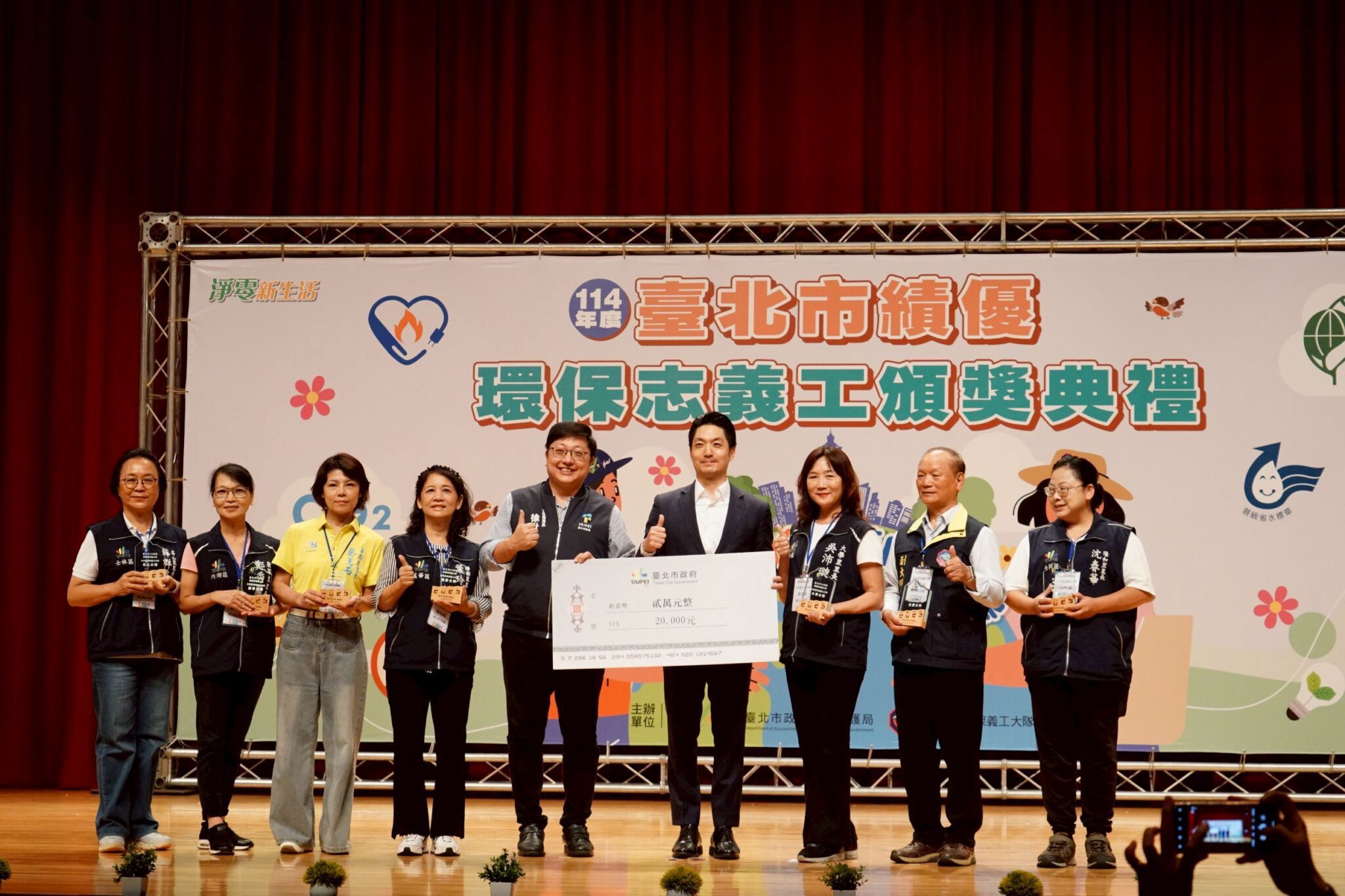 臺北市環保局今(12)日舉辦年度環保志義工頒獎典禮,表彰在環境保護工作中表現優異的義工團隊與個人。臺北市長蔣萬安親自出席感謝所有志義工長期以來為臺北市這座城市的整潔、乾淨與環保付出的心力,強調臺北市的環保成就已贏得國際的讚譽。