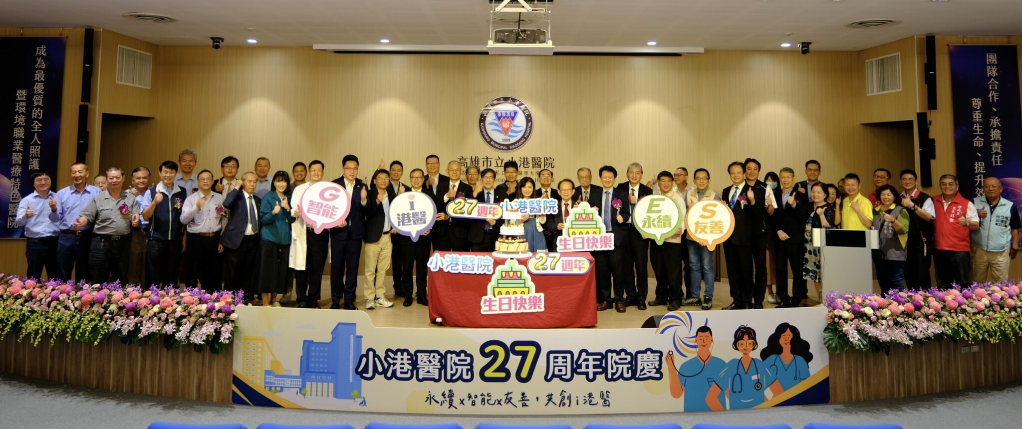 高雄市立小港醫院今(14)日舉辦「永續x智能x友善,共創i港醫」27週年院慶,邀請中央健康保險署高屏業務組、在地立法委員、議員、里長、中鋼、學校、地方企業與高醫醫療體系到場祝賀,院長洪志興除感謝過去一年各界對院方的支持與鼓勵,也期勉同仁持續以「永續 × 智能 × 友善」為核心價值,落實高醫體系的願景與使命,讓醫院在穩健經營中持續創新,展現公立醫院在地深耕的力量。