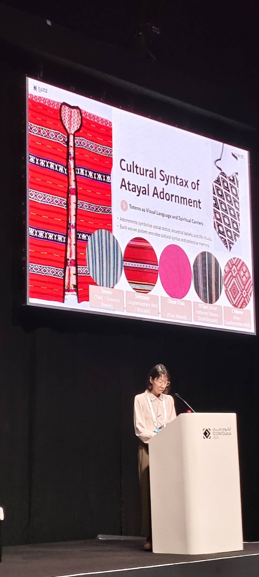 昨(13)日分組會議中,纖博館簡惠華與陳香吟分別於國際區域博物館委員會與國際服飾與設計委員會發表〈從敘事與協作重塑地方博物館品牌:以台中市纖維工藝博物館為例〉及〈編織記憶:泰雅族服飾文化中的裝飾藝術與認同〉,表現備受讚譽,許多觀眾踴躍提問,會後更吸引委員會主席與相關專業人士進行深度交流。