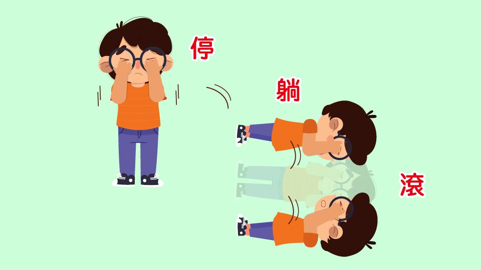 身上著火時,立即採取「停、躺、滾」的自救技巧(Stop, Drop, Roll),驚慌奔跑反而更加危險,立即停止動作、倒地翻滾,讓火勢熄滅。百福消防分隊隊員翁偉家說,希望從小就建立防災觀念,也能將正確的防火知識帶回家庭,共同提升居家防火安全。