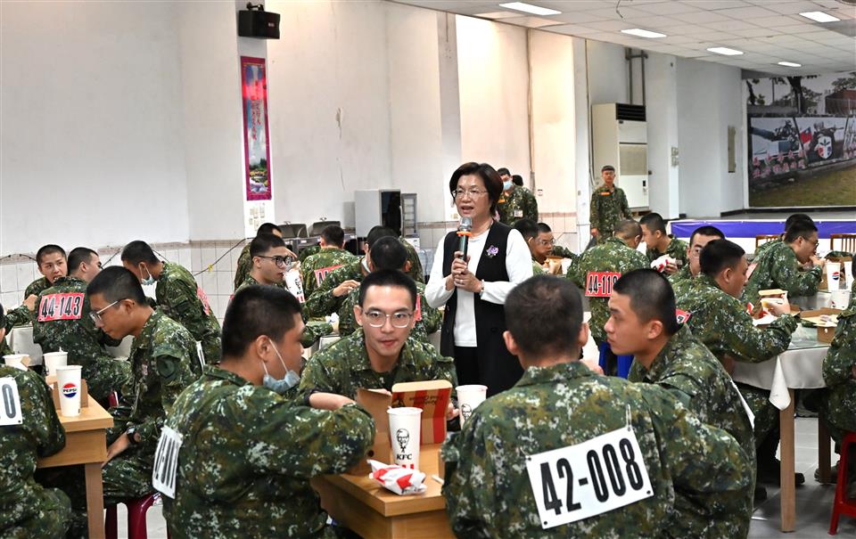 彰化縣長王惠美關心彰化子弟兵,今(14)日上午由縣府民政處副處長陳俊南等人陪同,前往台南大內營區探視陸軍第244梯次軍事訓練役的縣籍子弟兵,受到營區長官及受訓役男熱烈歡迎。王縣長現場致贈加菜金及每人一份速食餐點,並以縣長媽媽的口吻叮囑役男把握服役期間鍛鍊身心、立定志向,同時保重身體。期許快樂當兵,平安退伍。