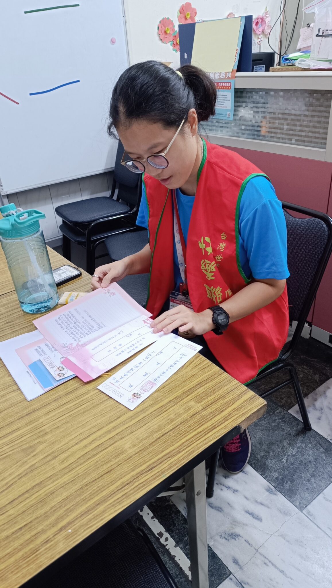 志工們彎著腰搬箱、整理、記錄,汗浸透了紅色背心,卻沒人喊苦。