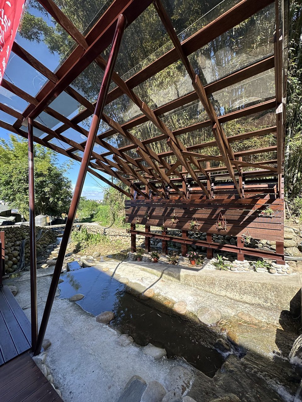 新的斜頂棚架以寬版鐵木構成,整合竹林視覺、管線收納與座椅設計,使居民能在光影變化中洗衣、聊天或休憩。改造後不僅恢復場域的使用功能,更讓空間的美學與生活感重新流動。桃園市文化局長邱正生參觀現場時表示,感謝藝術家陳宣誠教授主持整個改造計畫,中原師生與在地團隊歷時一年的耕耘、凝聚眾人力量,終於成就今日成果。