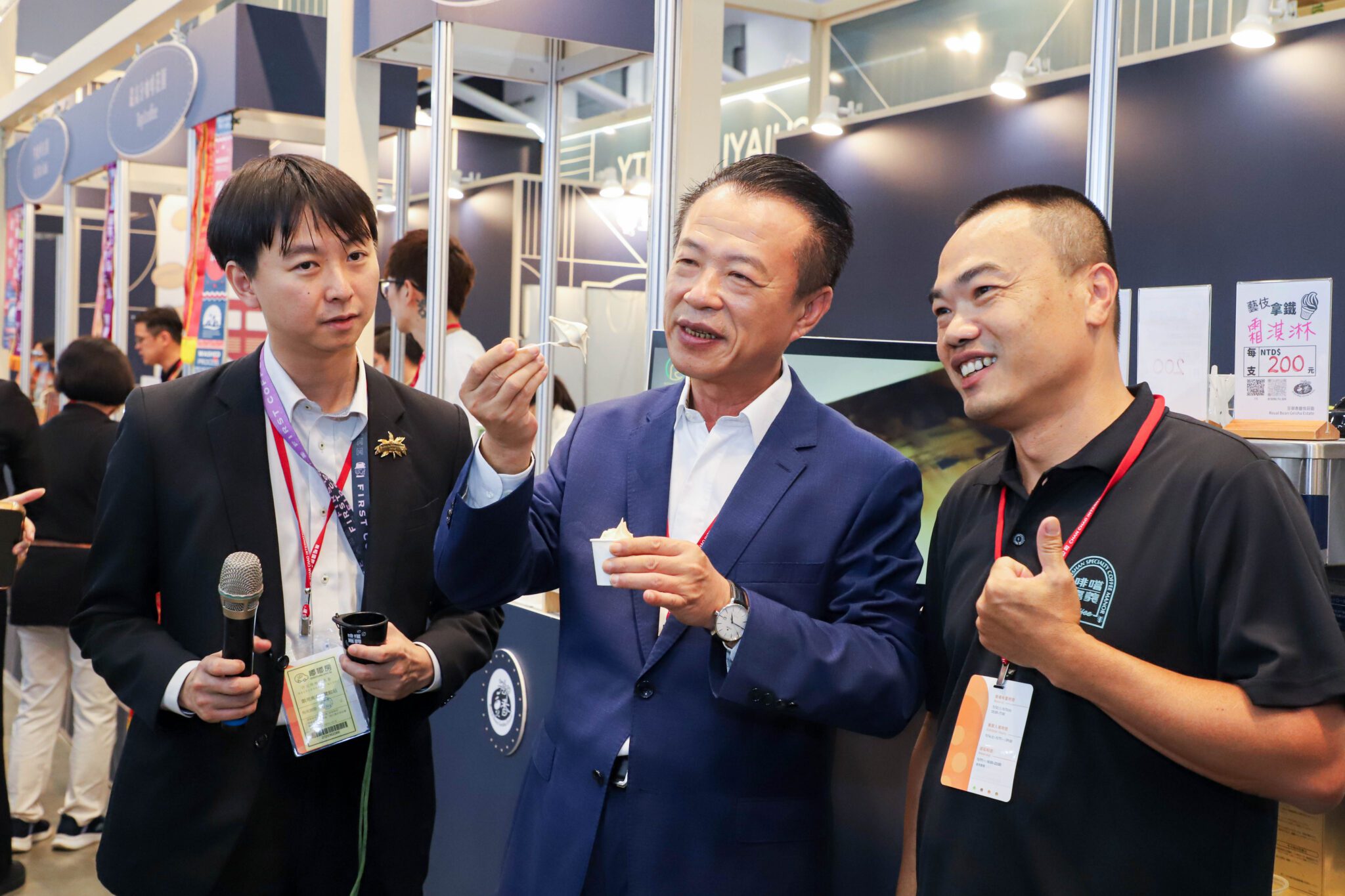開展首日吸引國內外眾多買家及職人前來洽談,買氣強強滾,縣長翁章梁也親自到場為業者打氣,並化身最強代言人,逐攤介紹茶與咖啡,十足的親和力讓參觀人潮絡繹不絕。