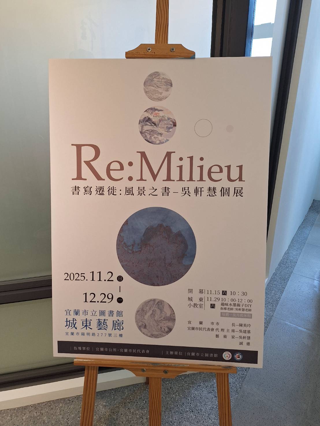 吳軒慧致詞指出,「Re:」代表著一種回應的姿態,既是對過去的回信,也是對當下世界的重新思考與期盼。法文「Milieu」比字義上的「環境」更具深遠。早期她的作品以變形山水和自然為主題,探討人文心境和禪意美學。留法的經驗讓她穿梭於多重地理與文化脈絡、氣候變遷與地緣張力,到生態倫理的研究,也逐漸意識到「風景」是一種由感知生成與世界互構的景觀。